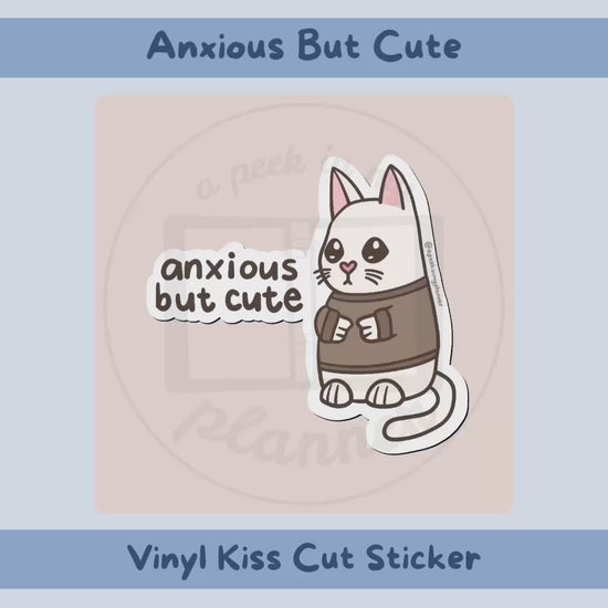 For the socially anxious sweetheart: cute, nervous, and wrapped in knitwear. An anxious but cute vibe in sticker form.