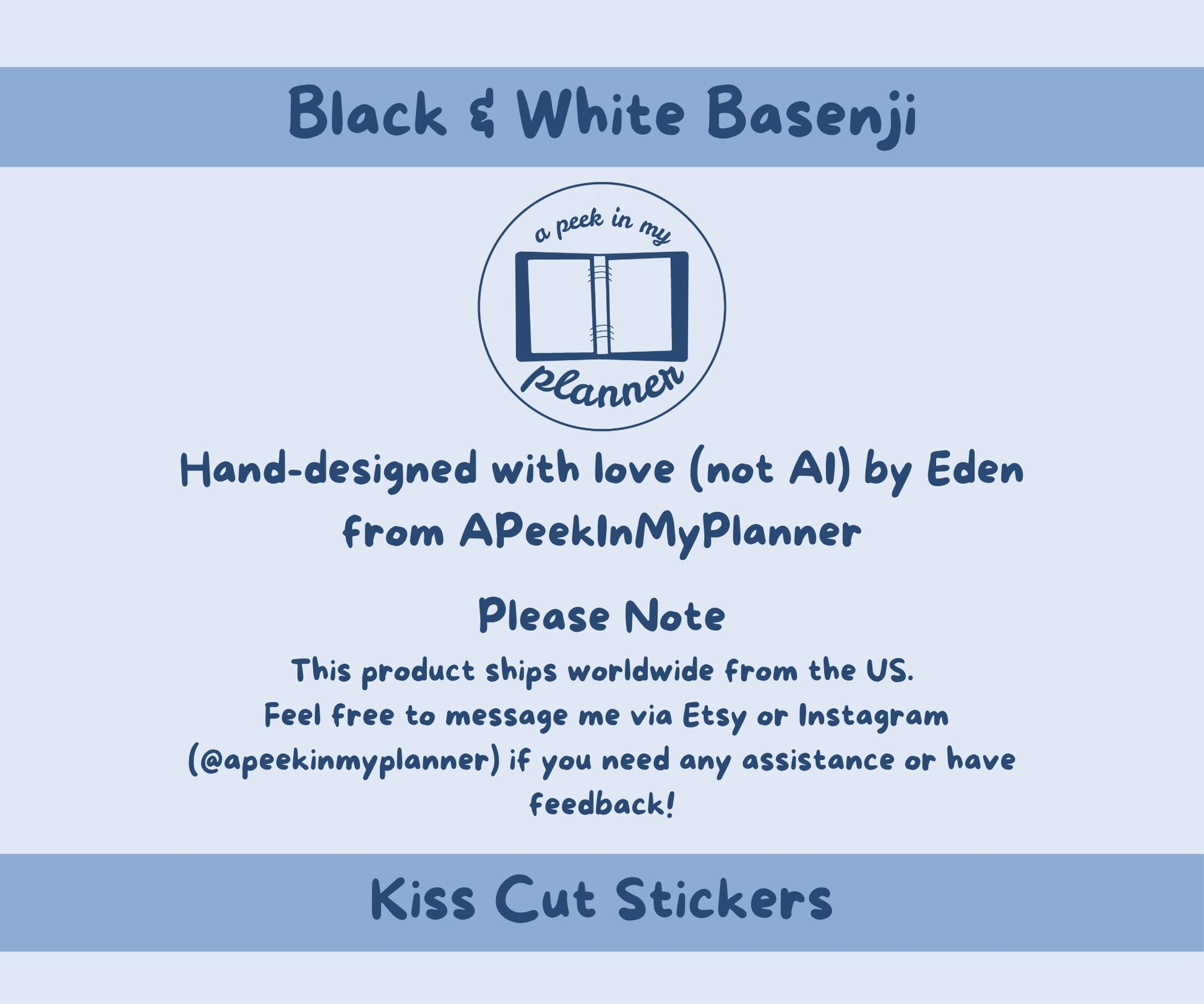 Basenji Sticker Sheet | Black & White Basenji Dog Kiss-Cut Stickers
