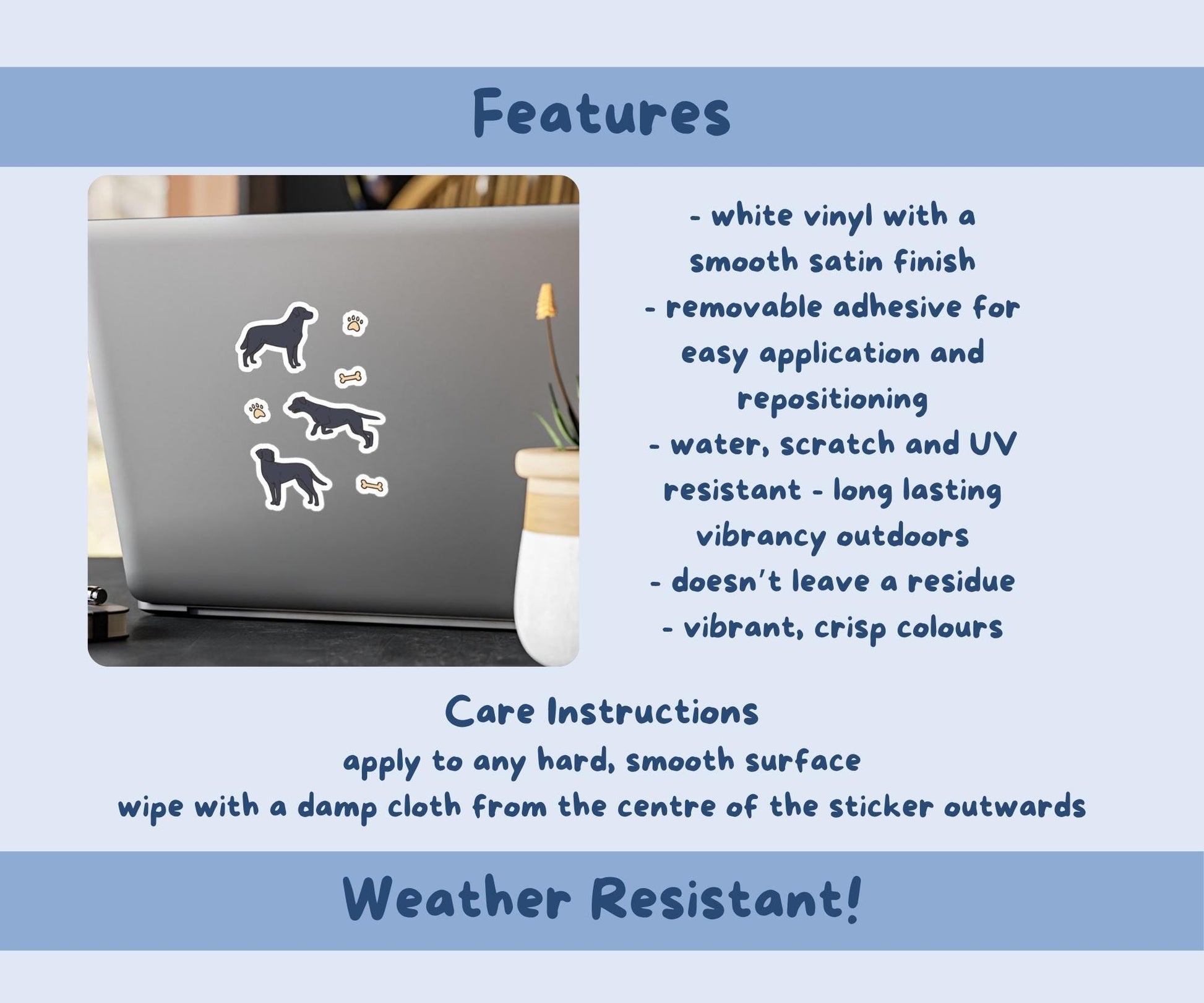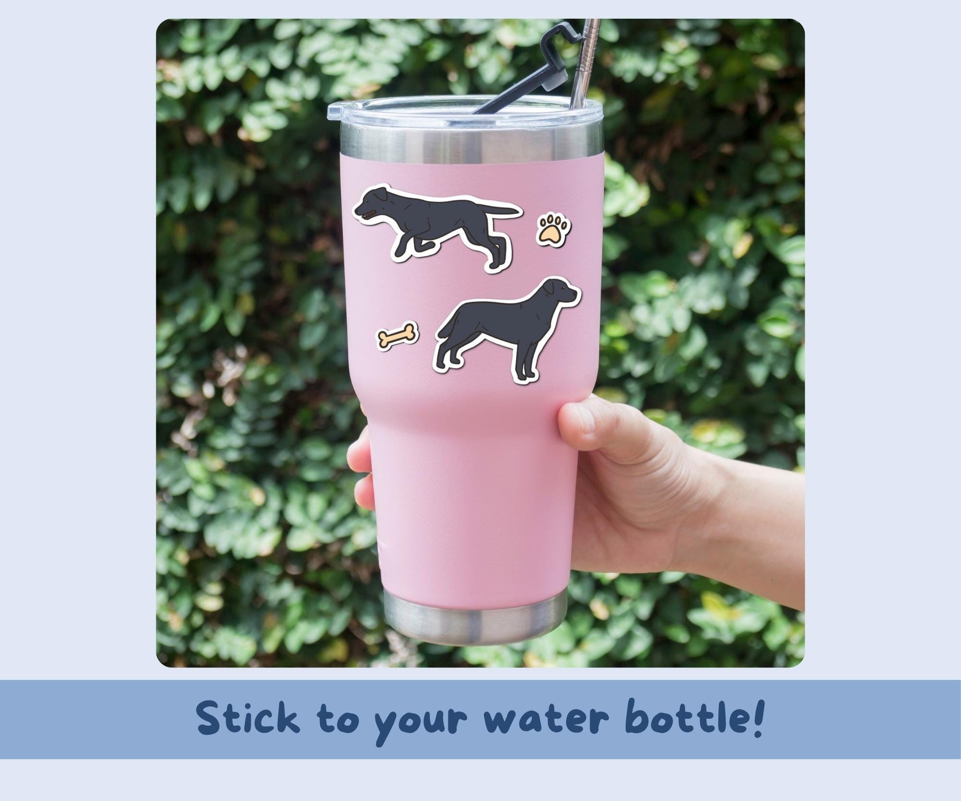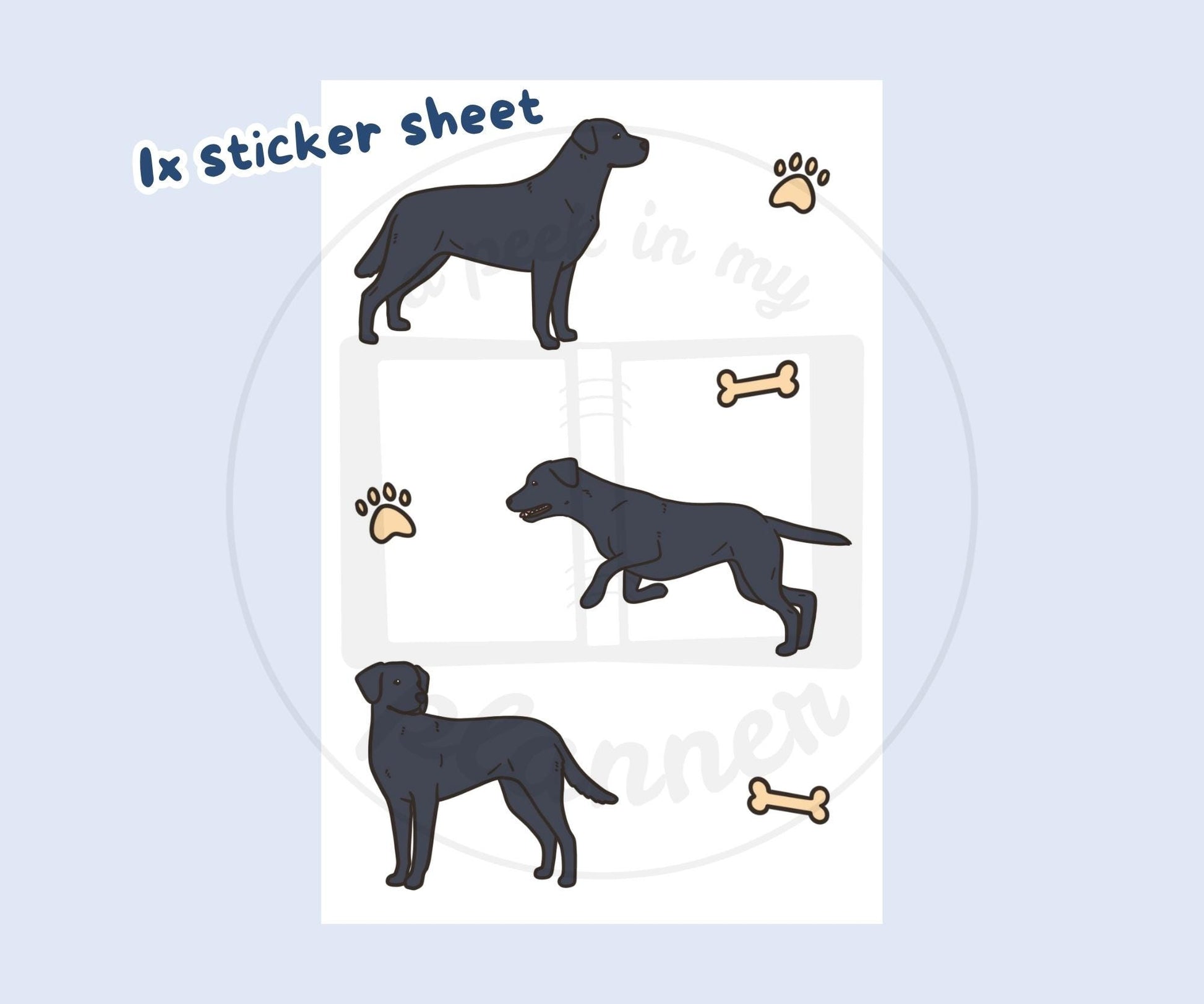 Hand illustrated (no AI) black Labradors with paw prints & bones vinyl sticker sheet.