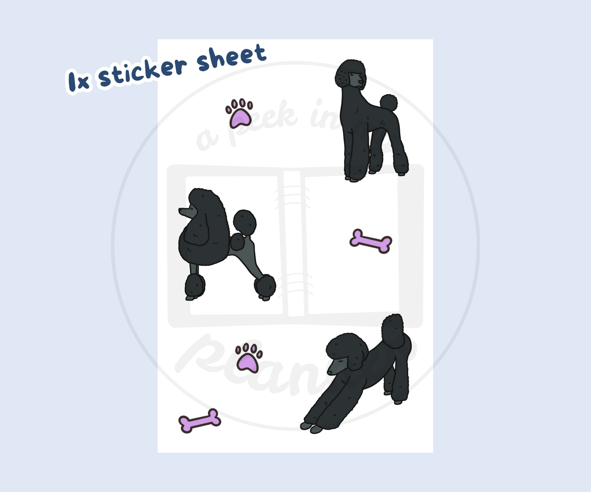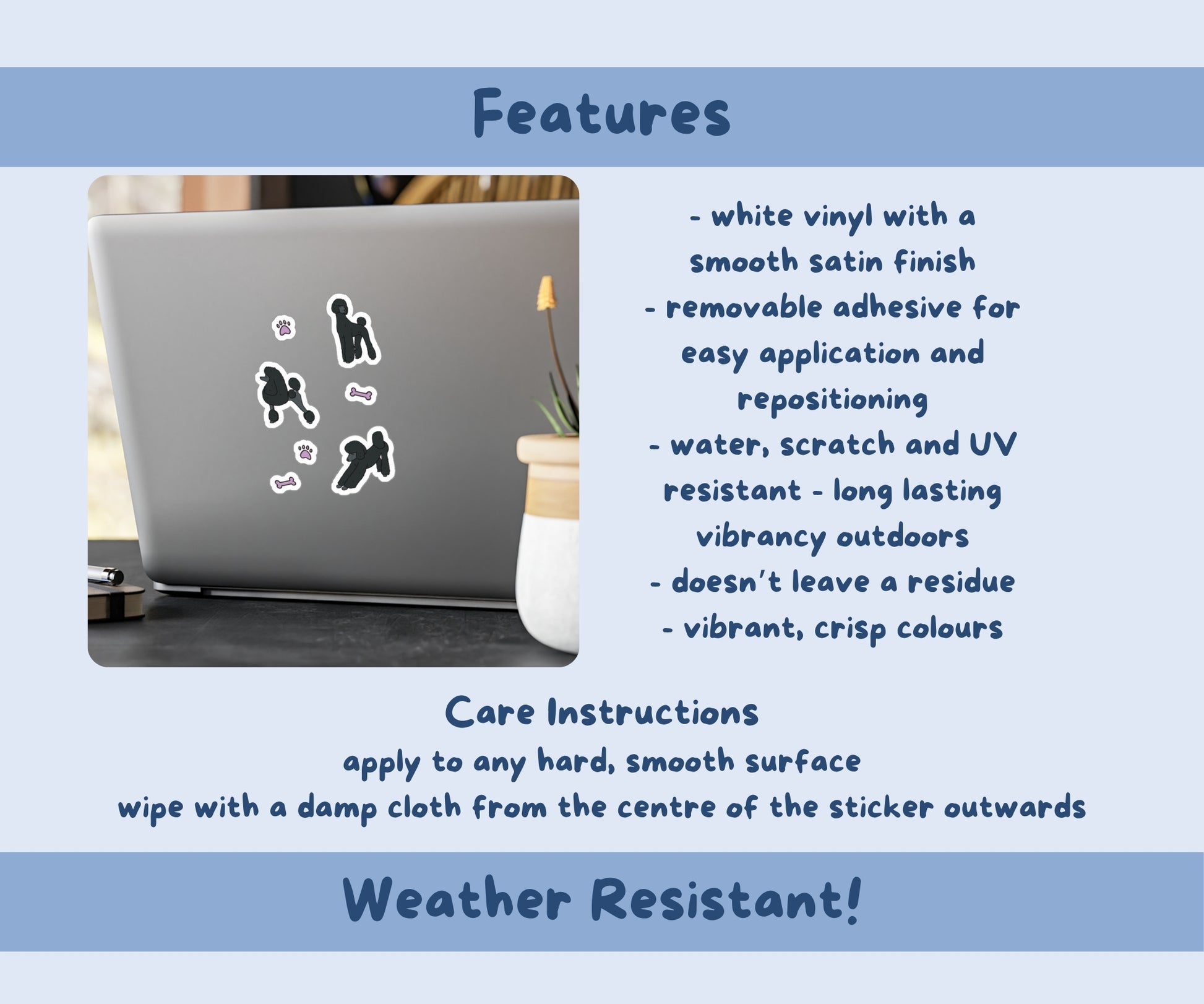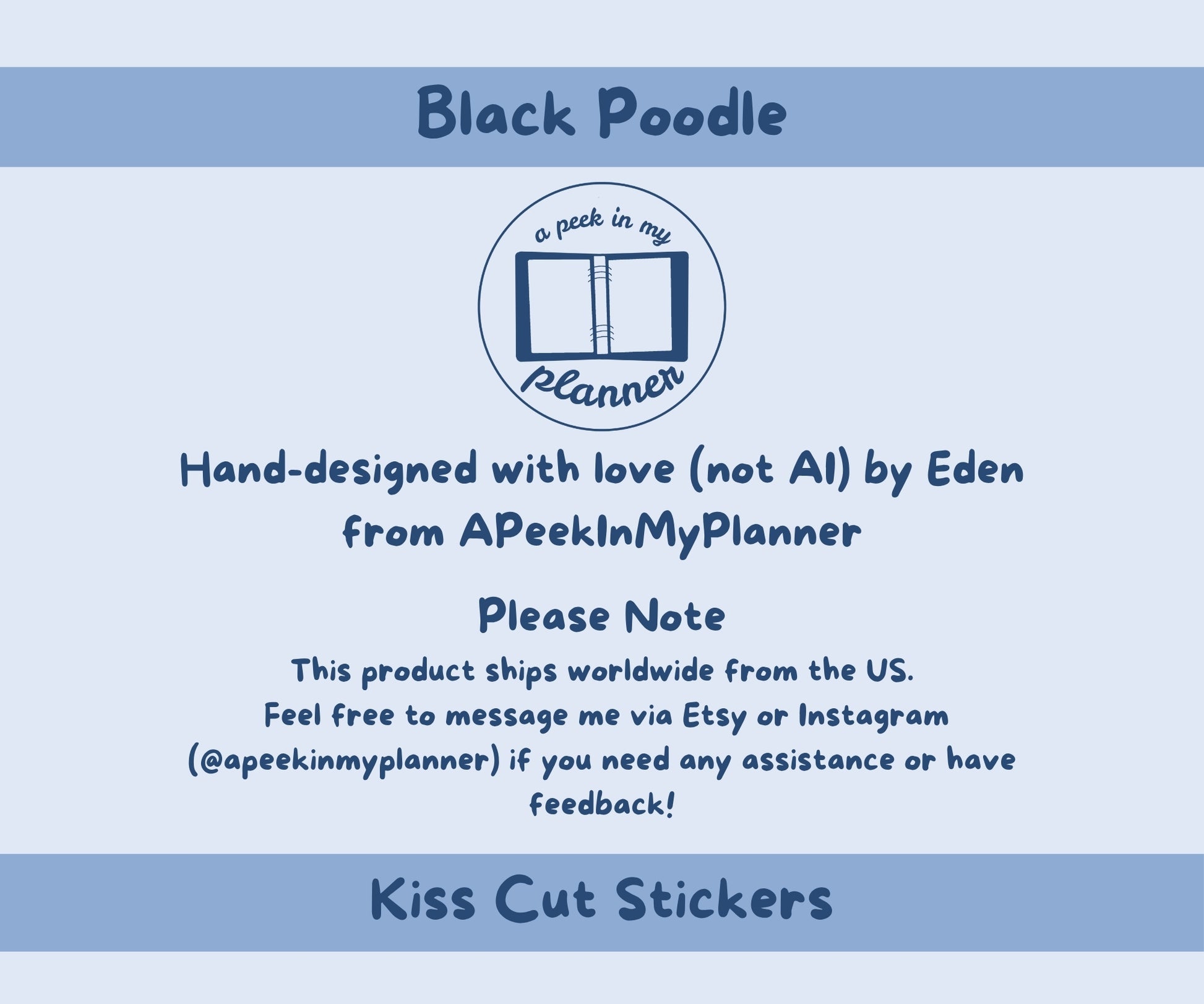 Black Poodle Sticker Sheet | Poodle Dog Kiss-Cut Stickers