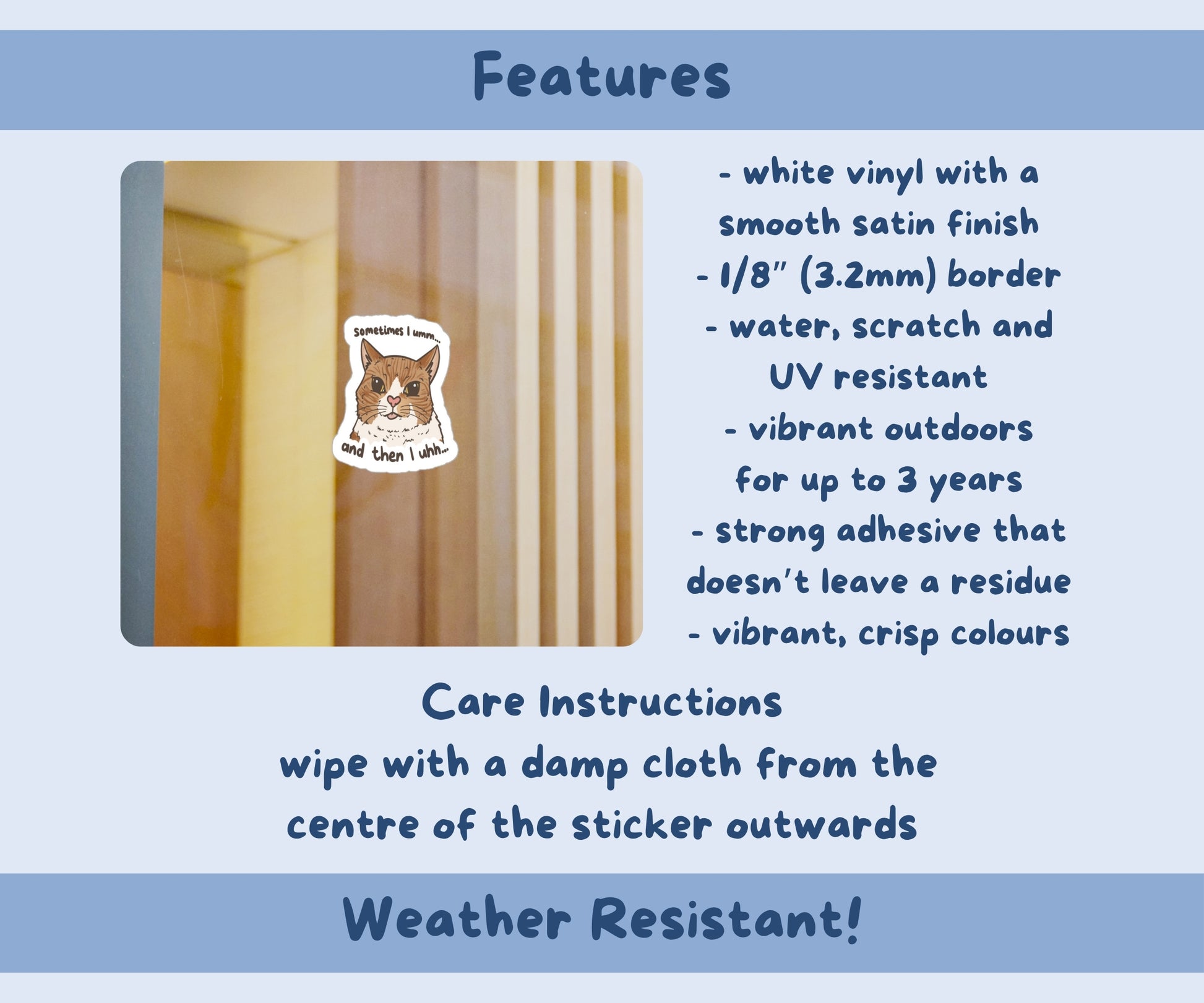 This orange tabby gets it. The blank stare, the buffering brain, the moment where words fall out of your head entirely. A perfect sticker for neurodivergent babes, anxious thinkers, and professional space cadets.