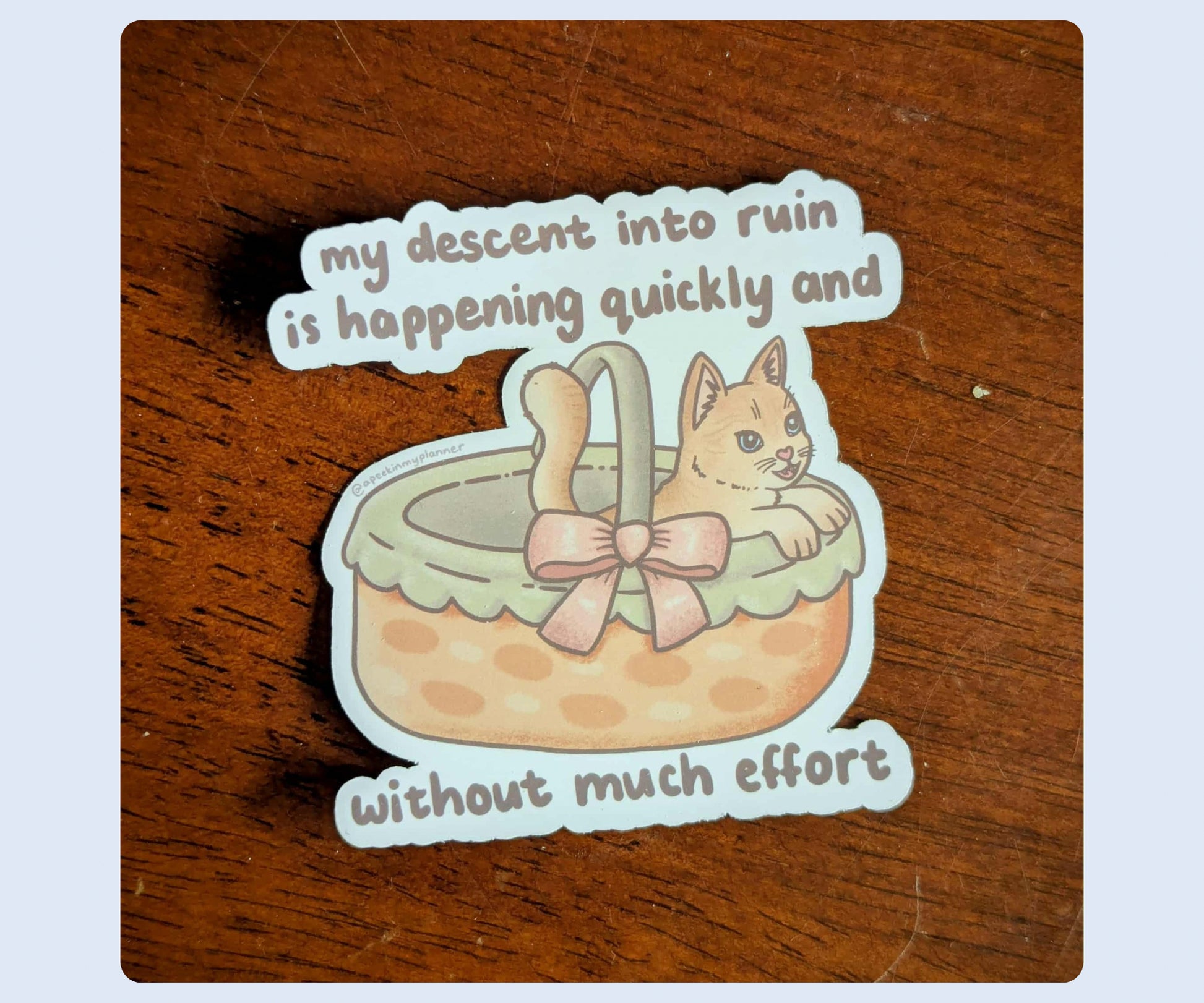 A cozy basket, a cute cat, and one very unhinged confession. Equal parts adorable and existential.