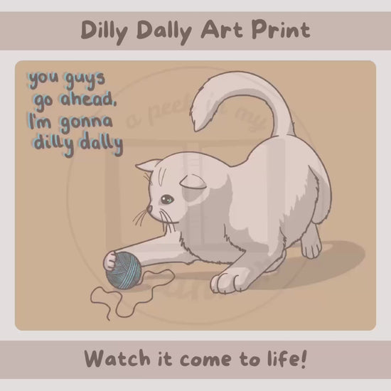 Bring a playful pause to your space with this charming, whimsical art print. This piece is perfect for cat lovers, slow-living advocates, or anyone who needs a lighthearted reminder to take things at their own pace. Perfect as a gift for cat lovers, whimsical art fans, or those embracing a slower, more intentional lifestyle.