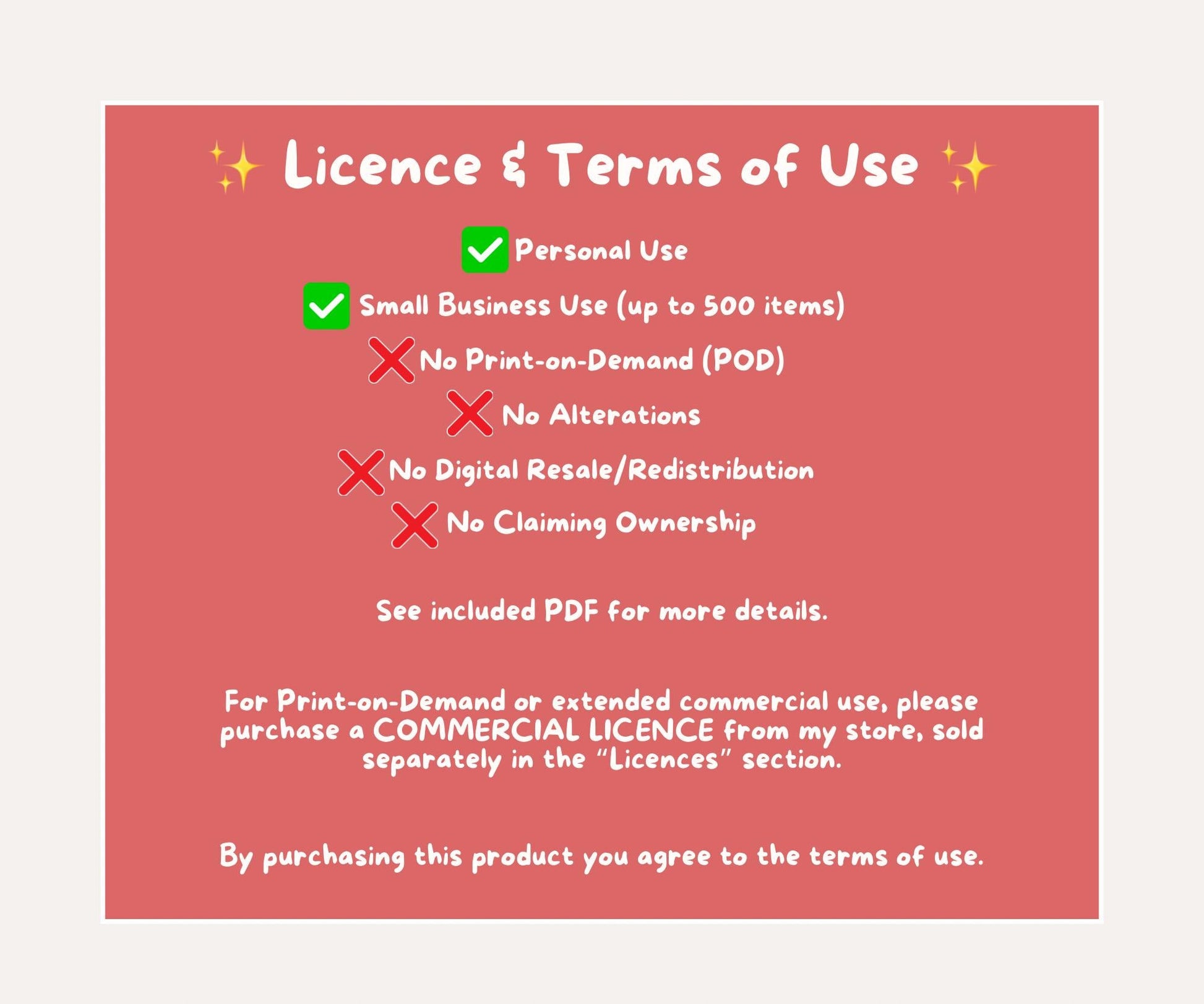 - No Print-on-Demand (POD): you may not upload this pattern to print-on-demand sites including but not limited to Teepublic, RedBubble, Zazzle, Printify, Printful - PLEASE BUY A POD LICENCE