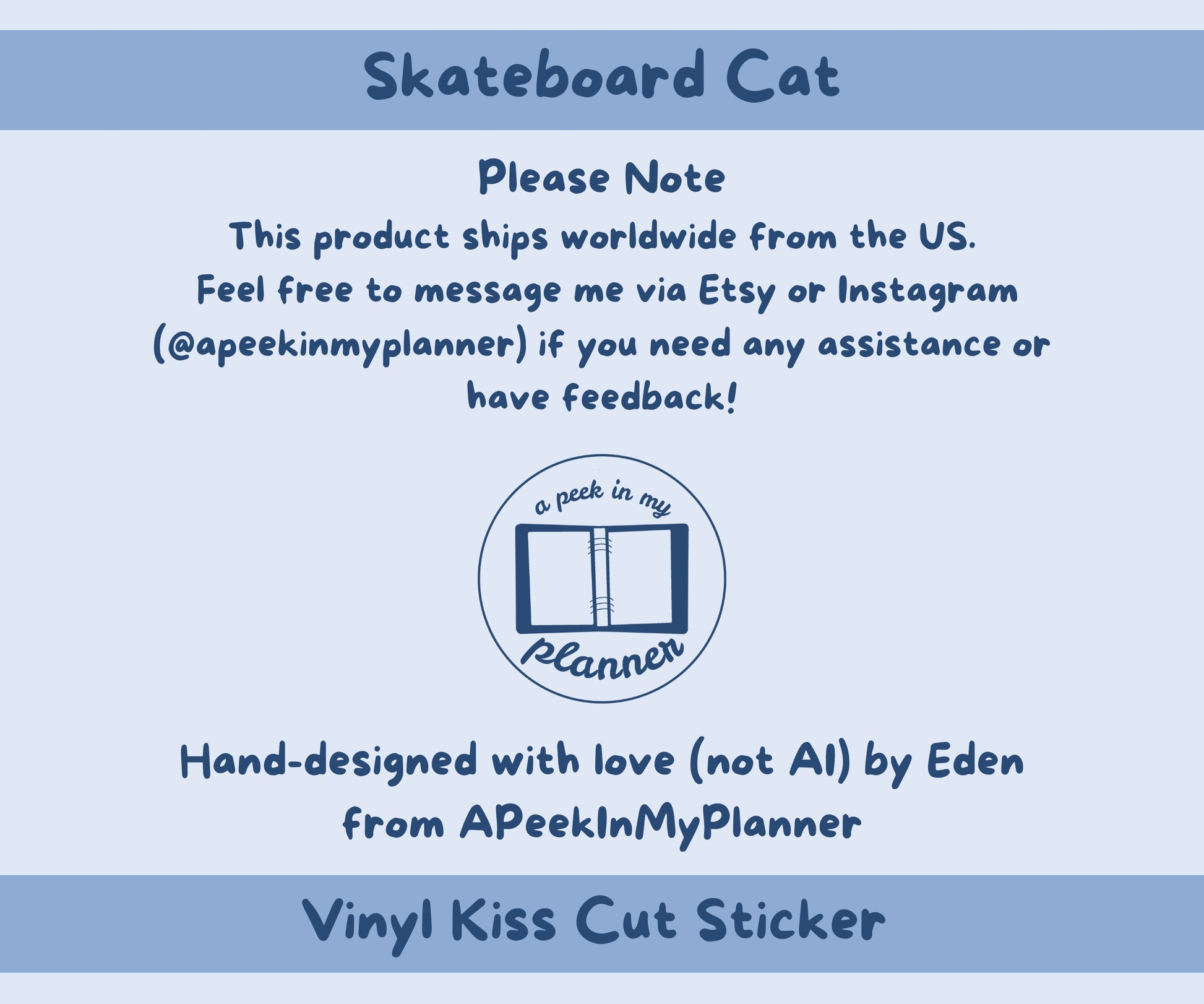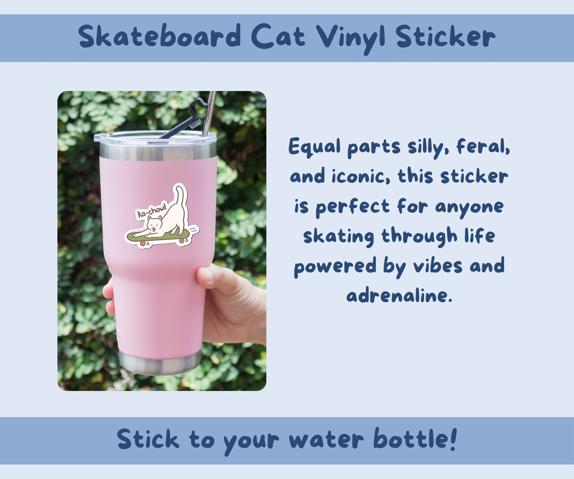 Skateboarding Cat Vinyl Kiss-Cut Sticker