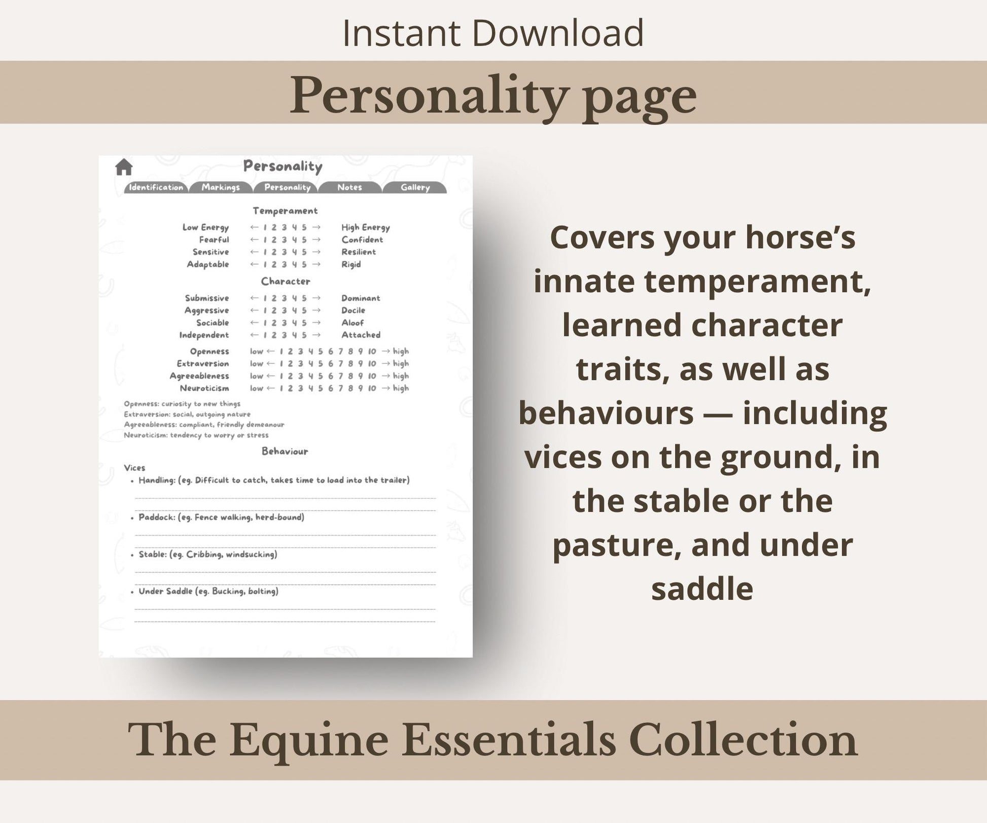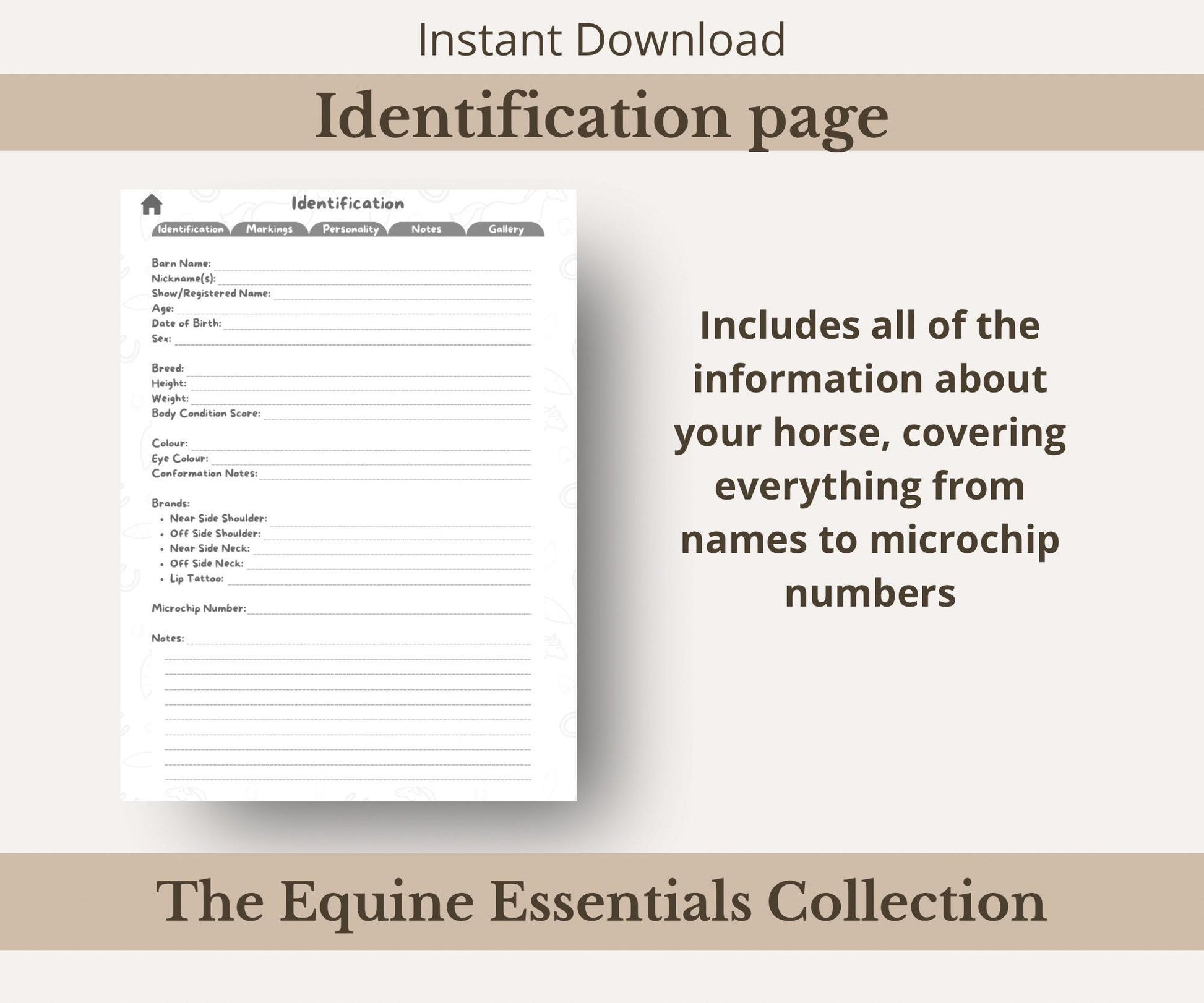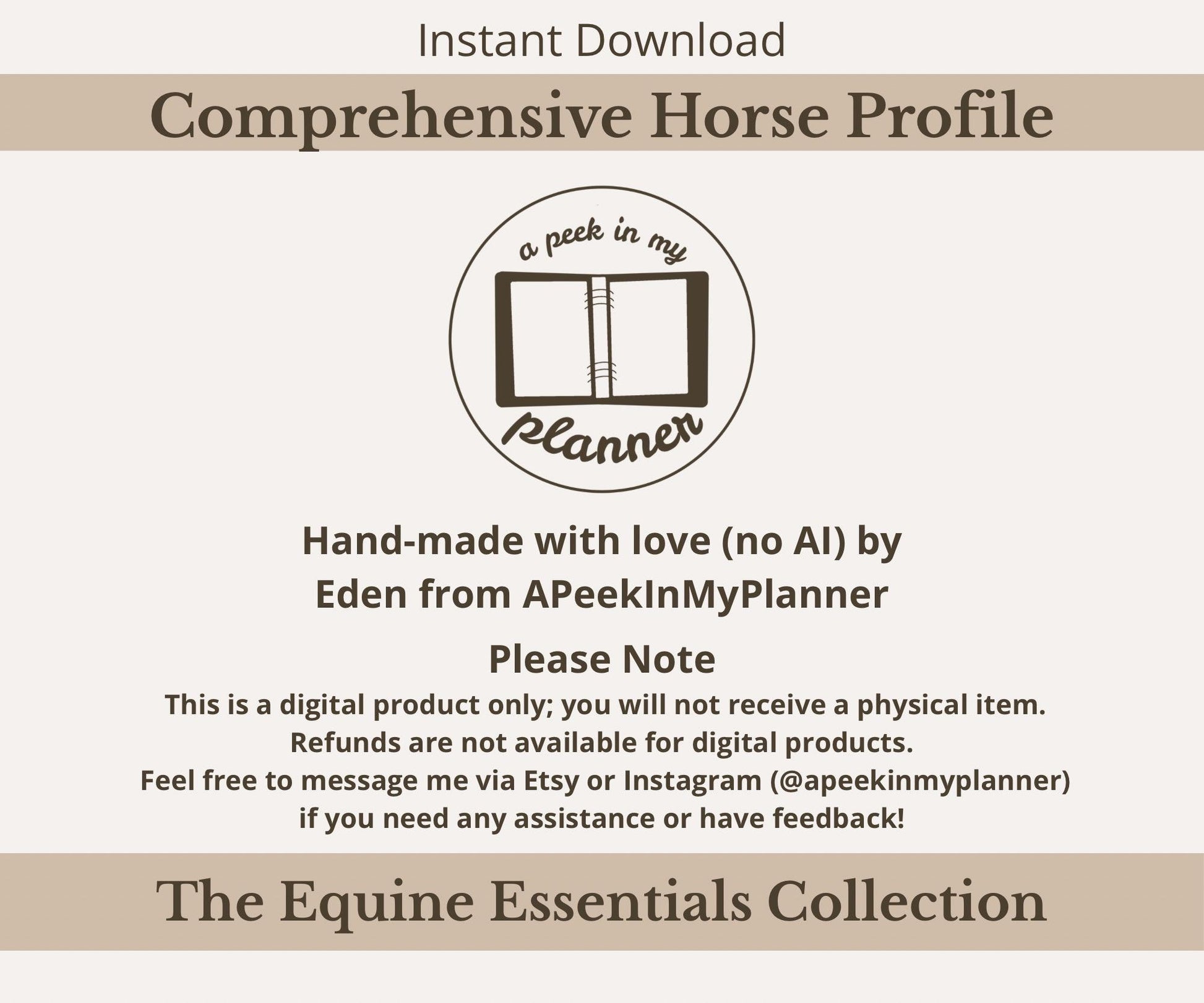 Create the most detailed and personalised horse record with the Comprehensive Horse Profile Bundle — perfect for horse owners, barn managers, equestrians, and breeders who want to keep all key horse details beautifully organised and accessible.