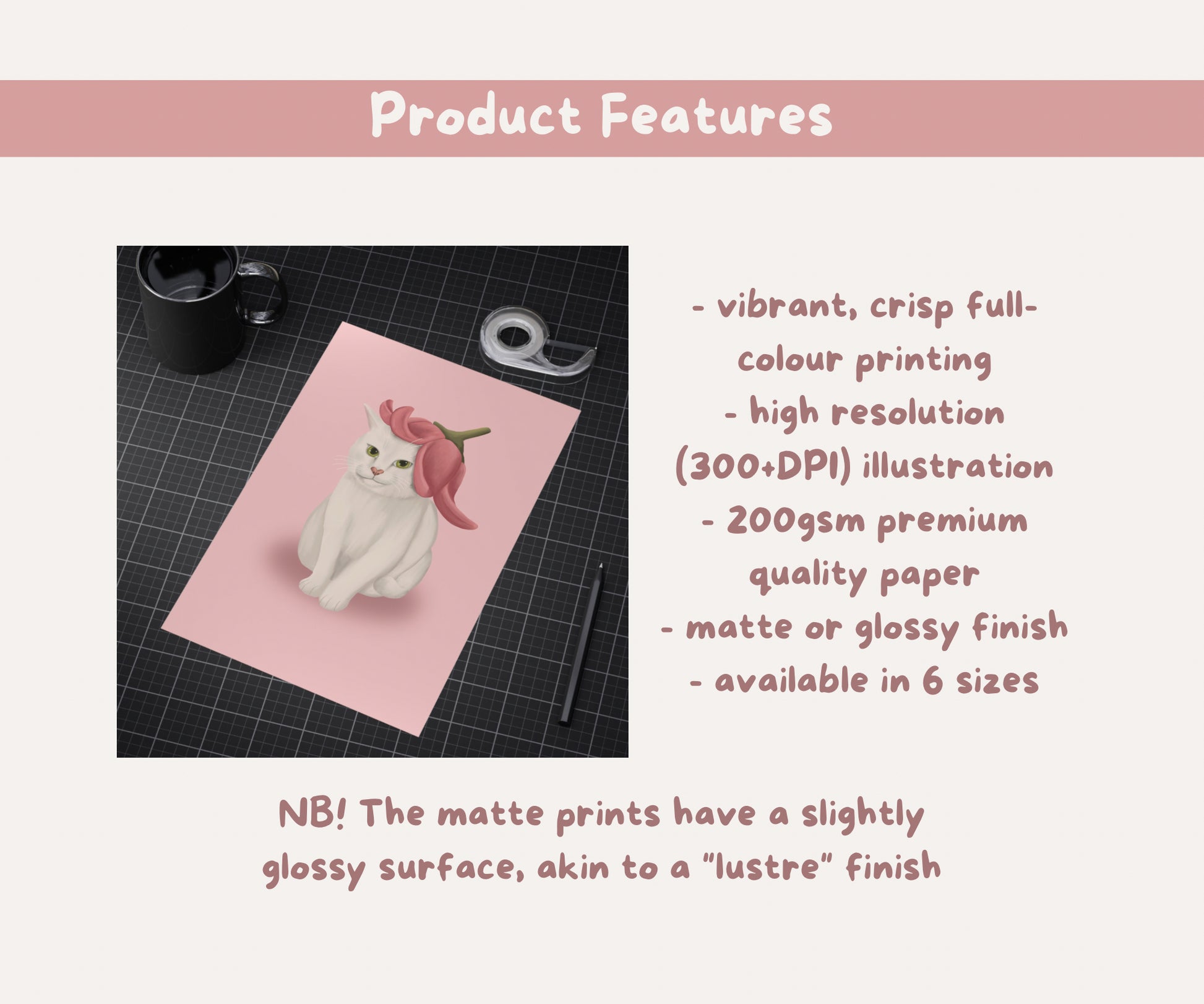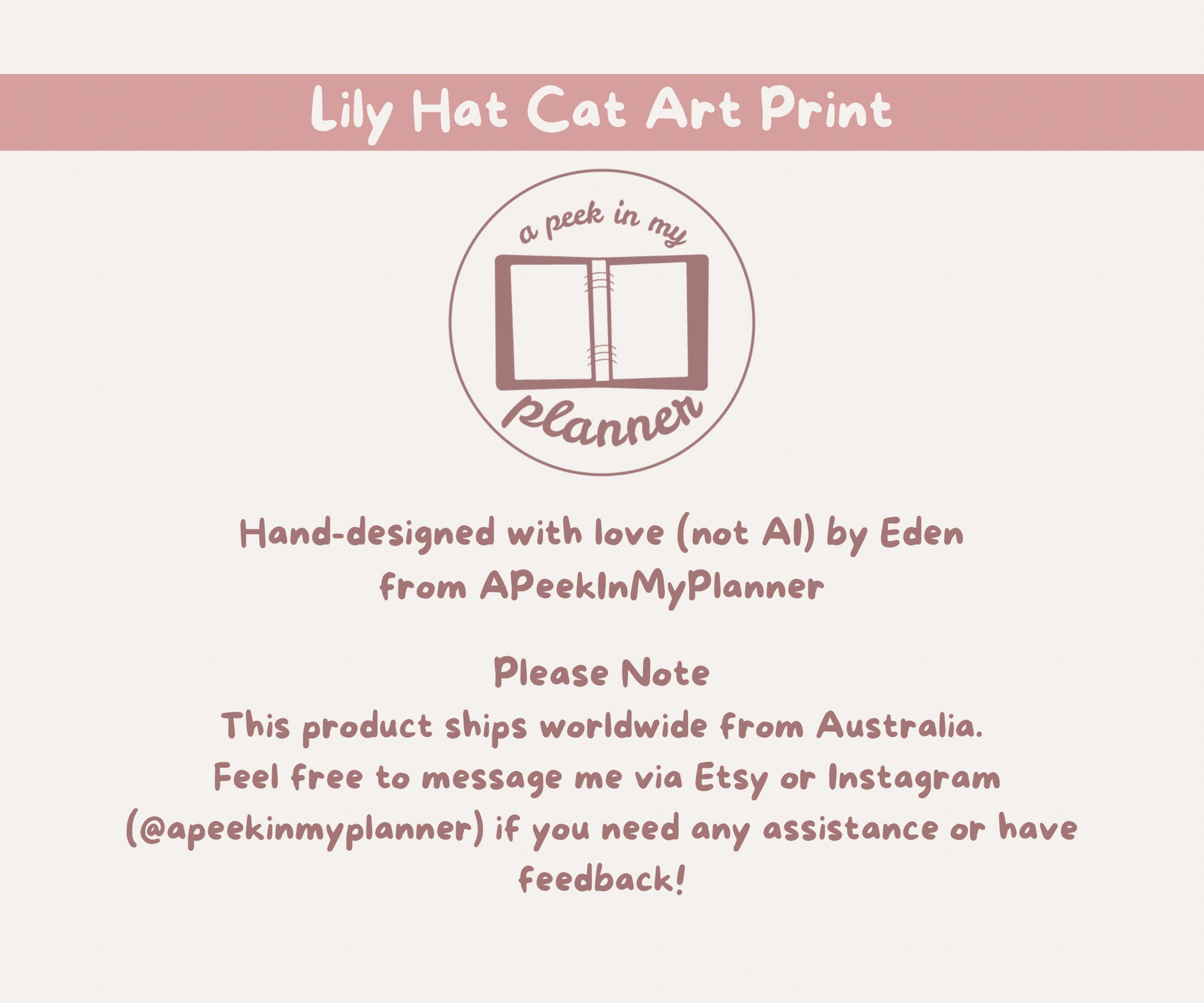 Lily Hat Cat Unframed Prints | Cute Floral Kitty Wall Art