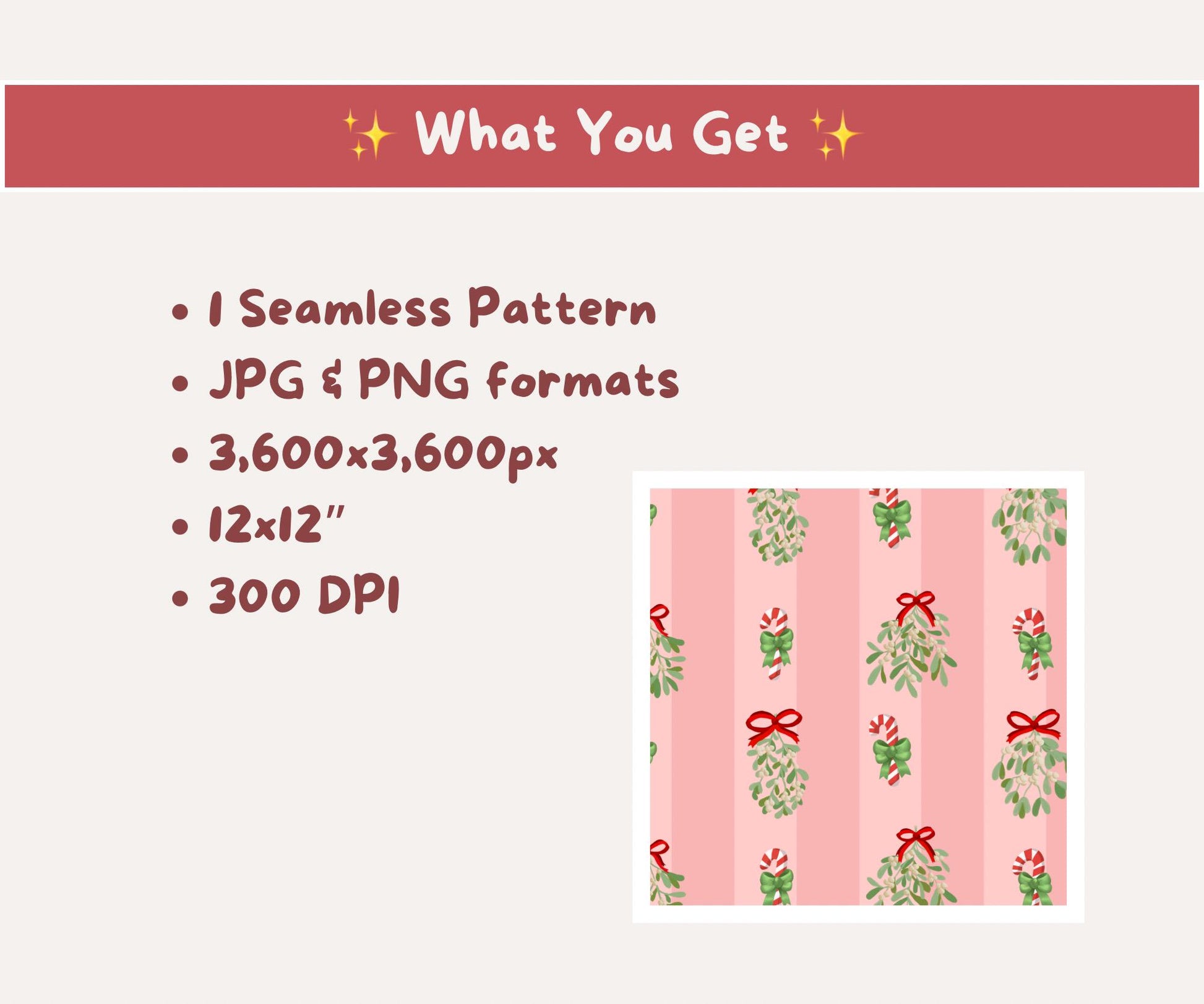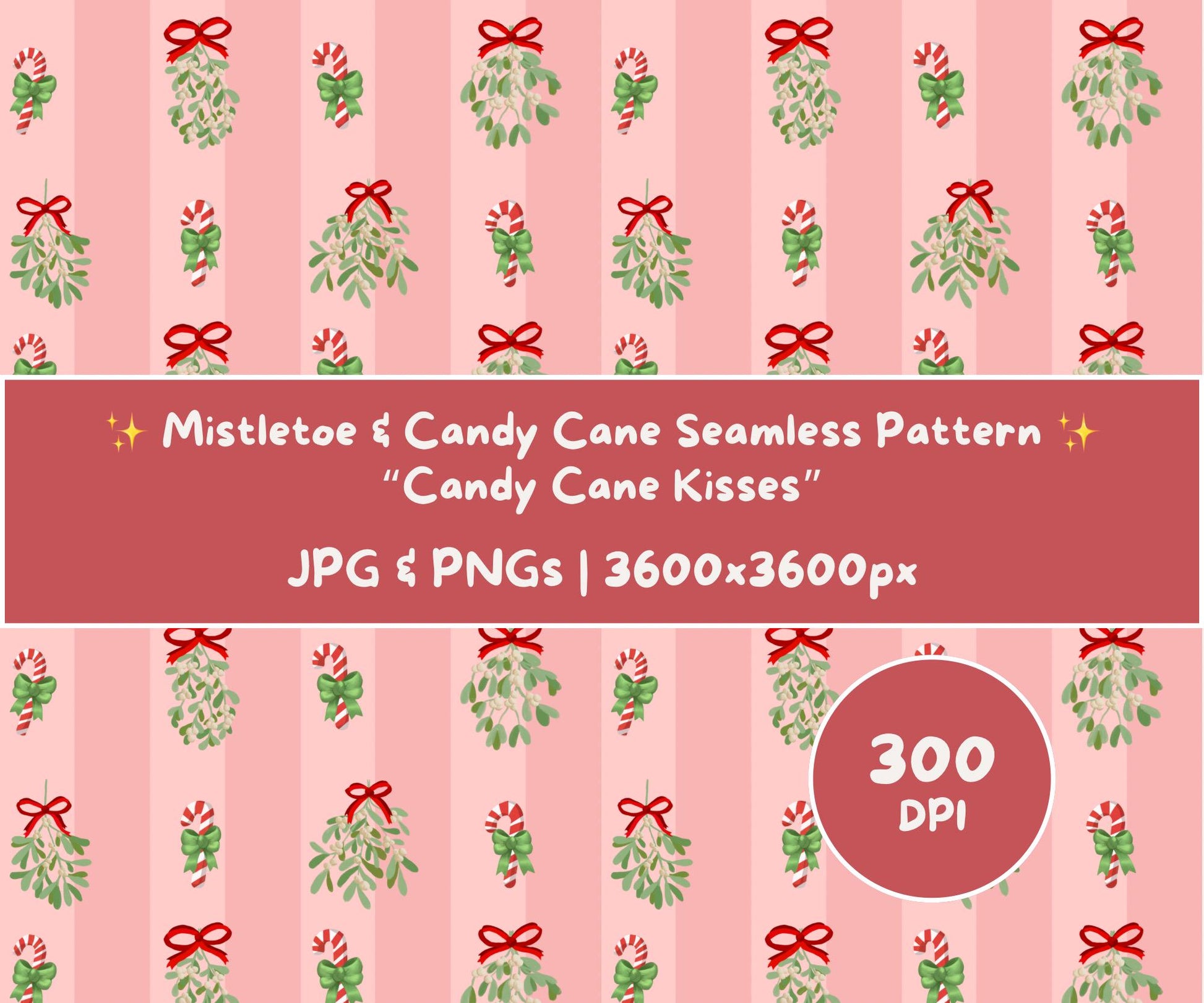 Mistletoe & Candy Cane Seamless Pattern | Candy Cane Kisses