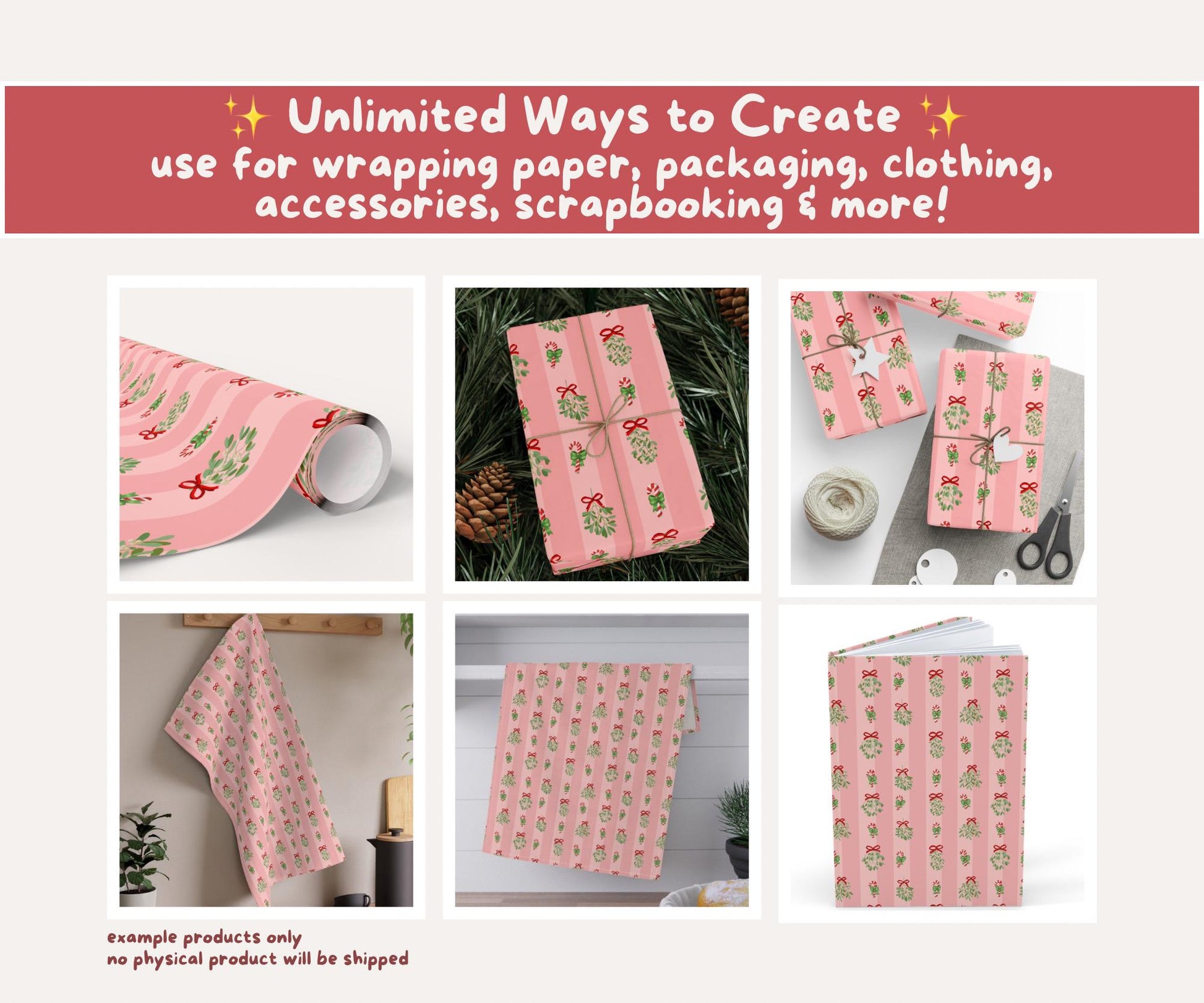 ✨ Sweet mistletoe and candy canes tied in ribbons — a romantic, timeless Christmas design.