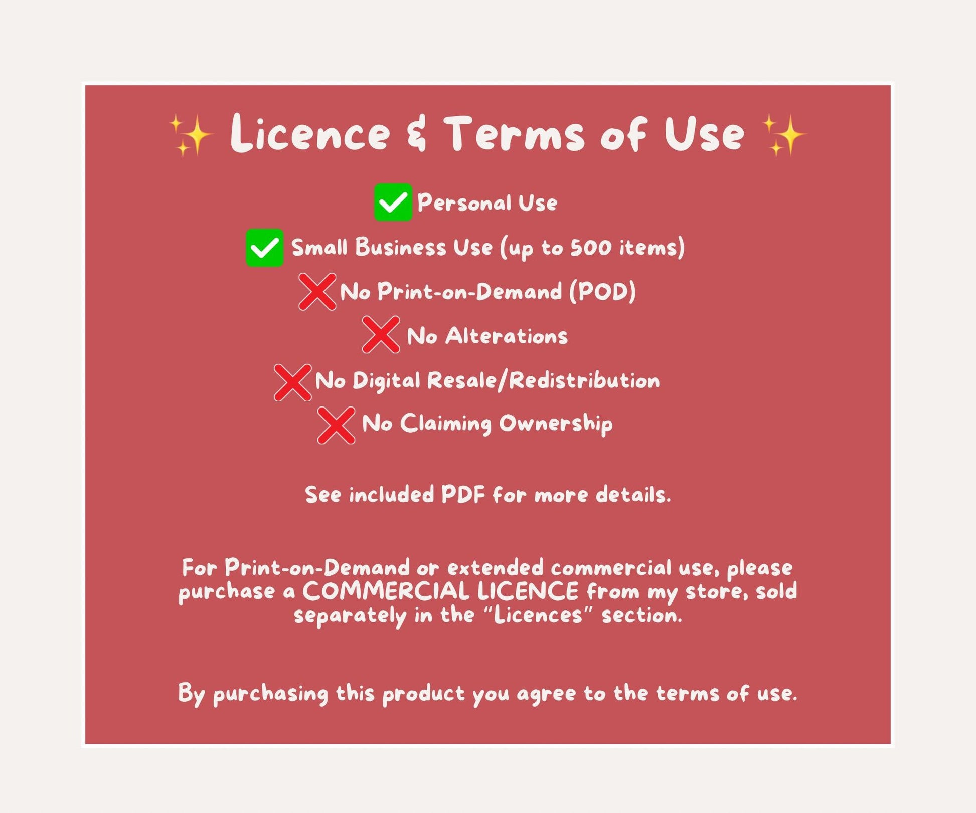 - No Print-on-Demand (POD): you may not upload this pattern to print-on-demand sites including but not limited to Teepublic, RedBubble, Zazzle, Printify, Printful - PLEASE BUY A POD LICENCE