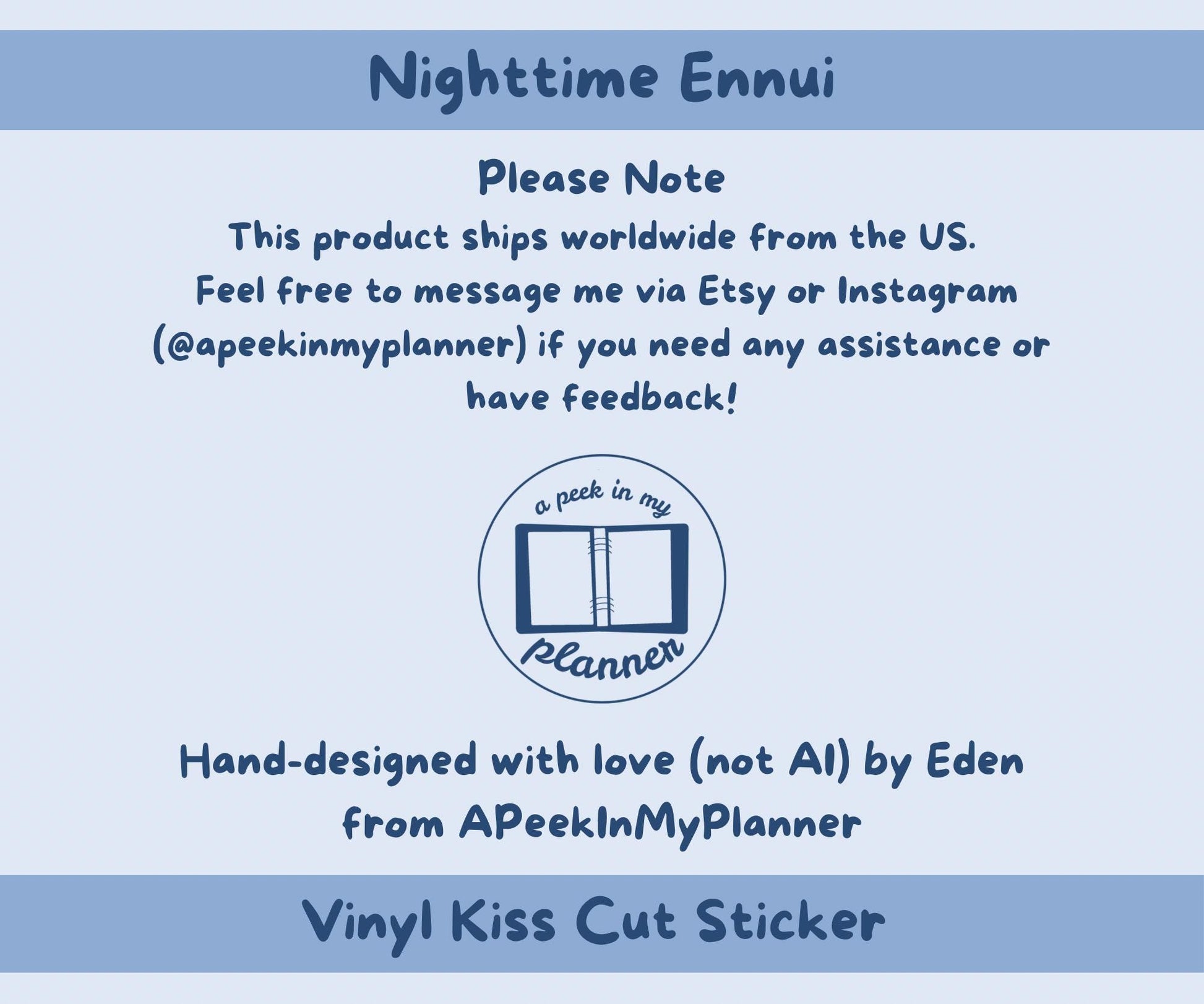 This sticker captures that very specific nighttime vibe where you’re not sad… but you’re definitely staring into the void like a Victorian child by candlelight.