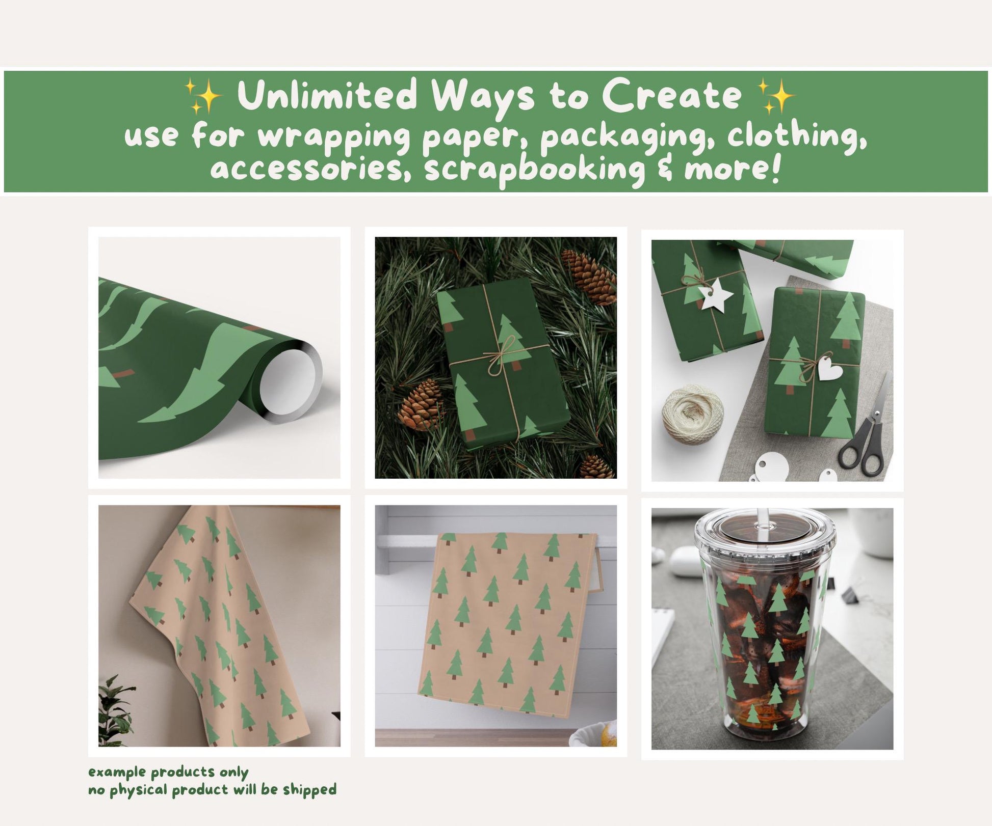 ✨ Evergreen forests in festive bloom: hand-drawn Christmas trees in all their cozy, decorative charm. In three colourways: Midnight Blue, Holly Green, & Vintage Cream PLUS transparent.