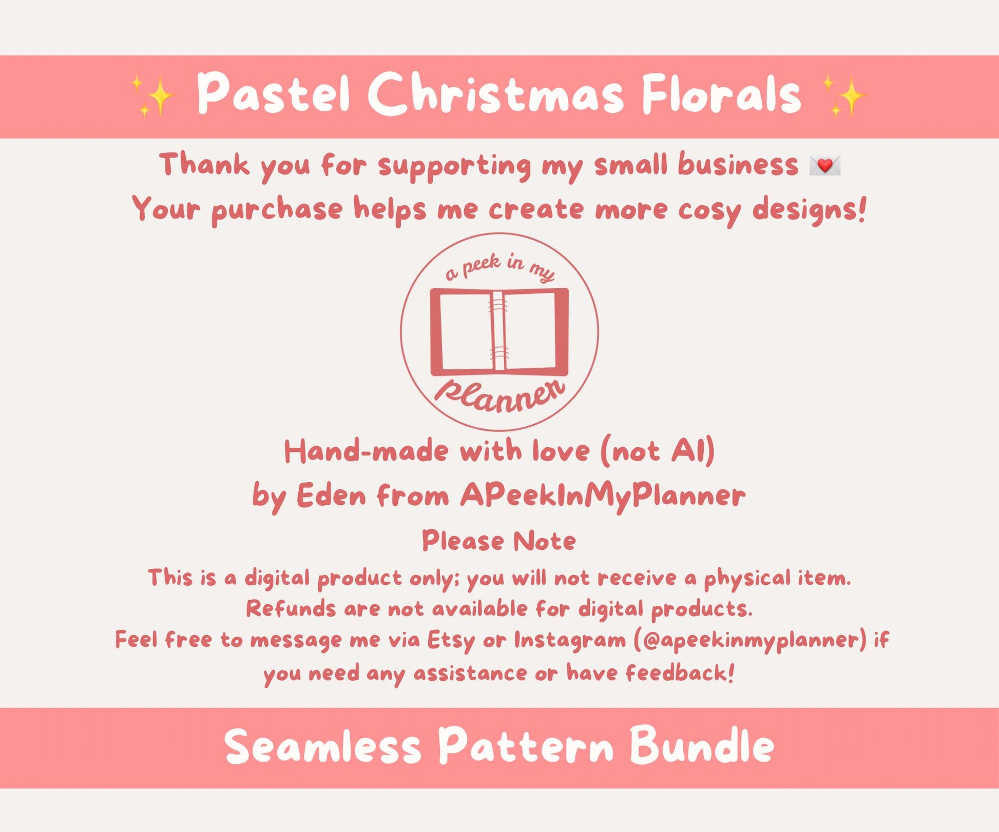 Pastel Christmas Florals Seamless Pattern Bundle | 19 Festive Digital Papers