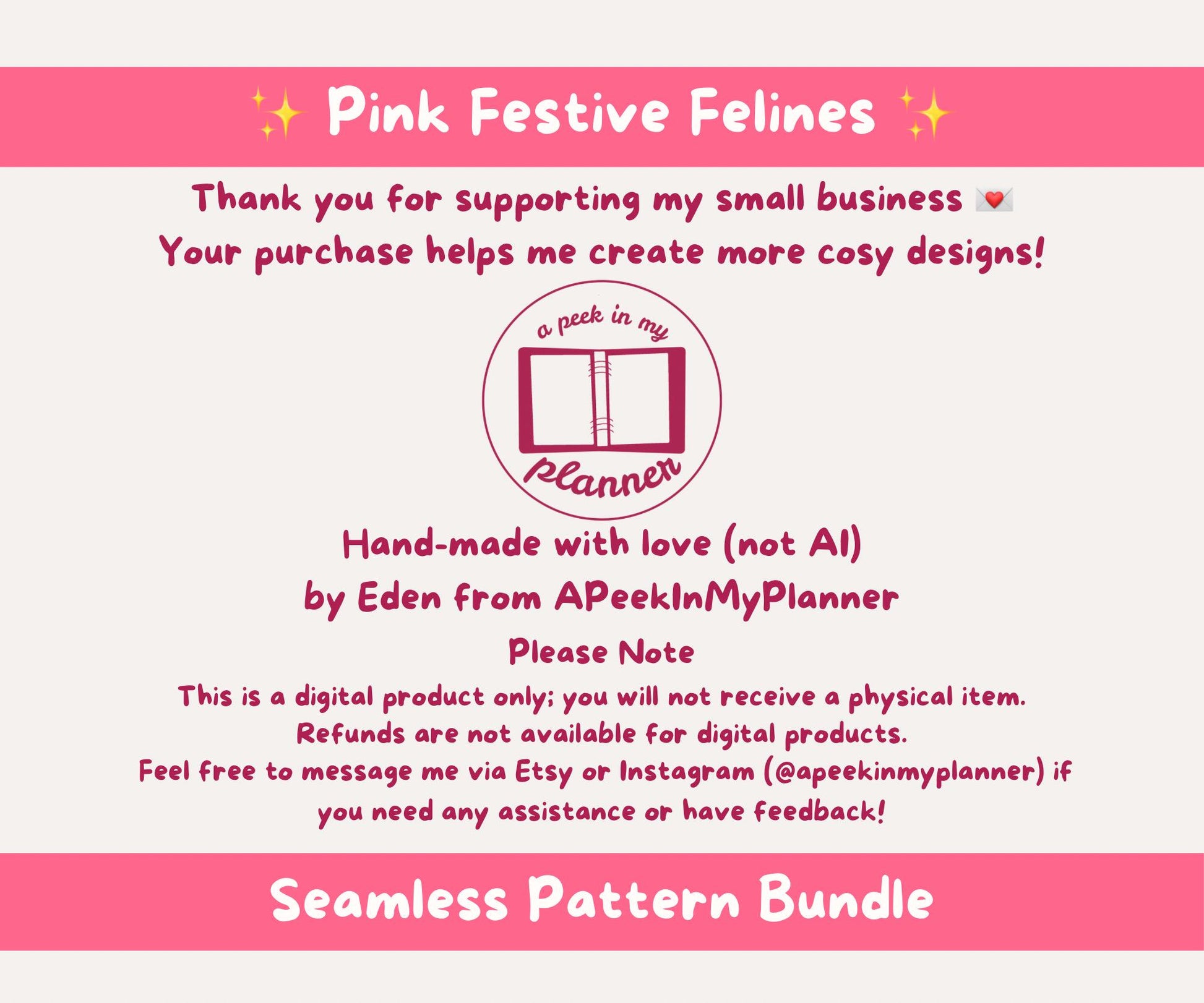 Pink Festive Felines Seamless Pattern Bundle | Pink Christmas Cats