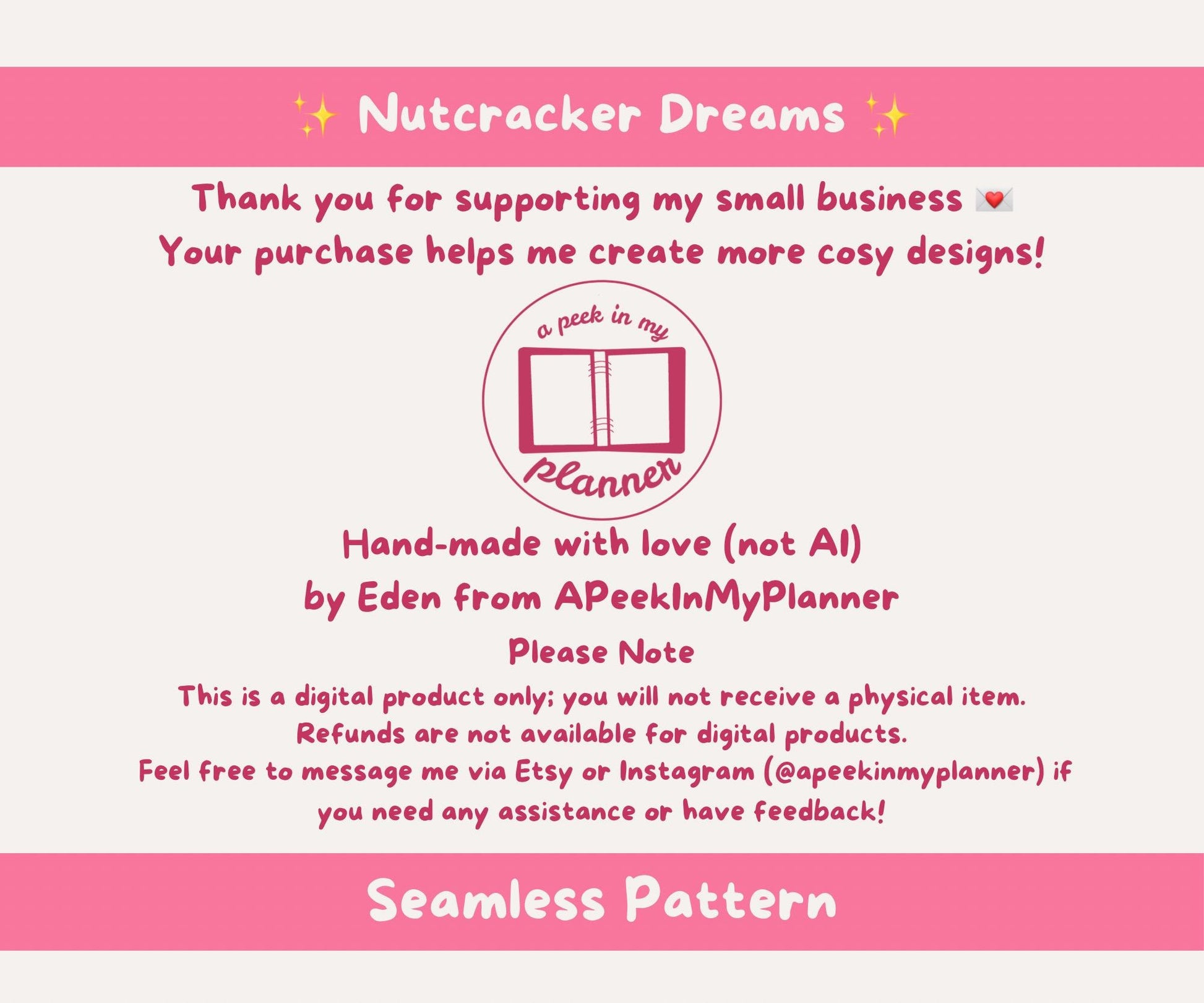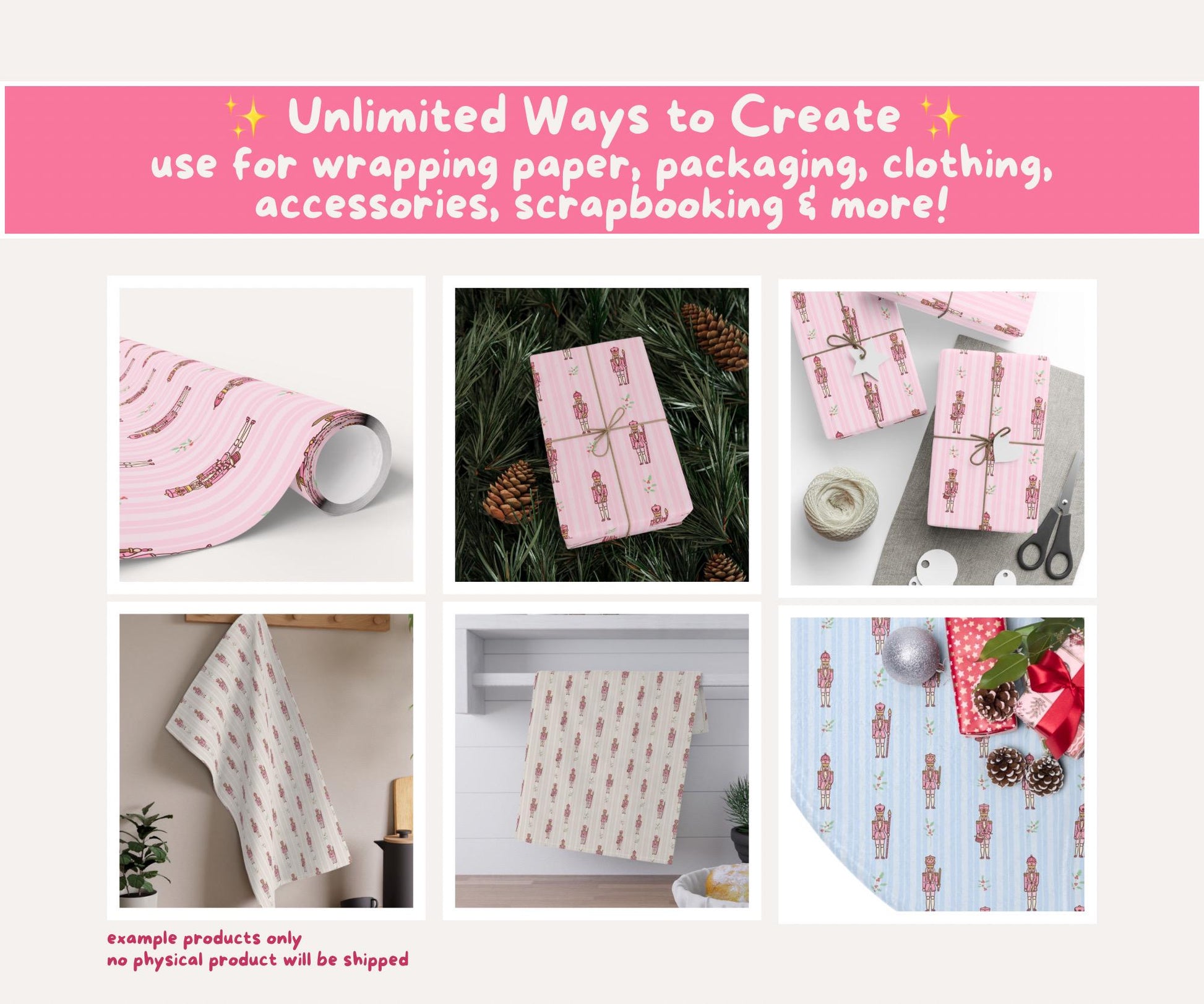 ✨ A dreamy pattern featuring pastel nutcracker soldiers, holly leaves, and soft stripes. Comes in 3 colourways: Pastel Pink, Vintage Cream & Powder Blue