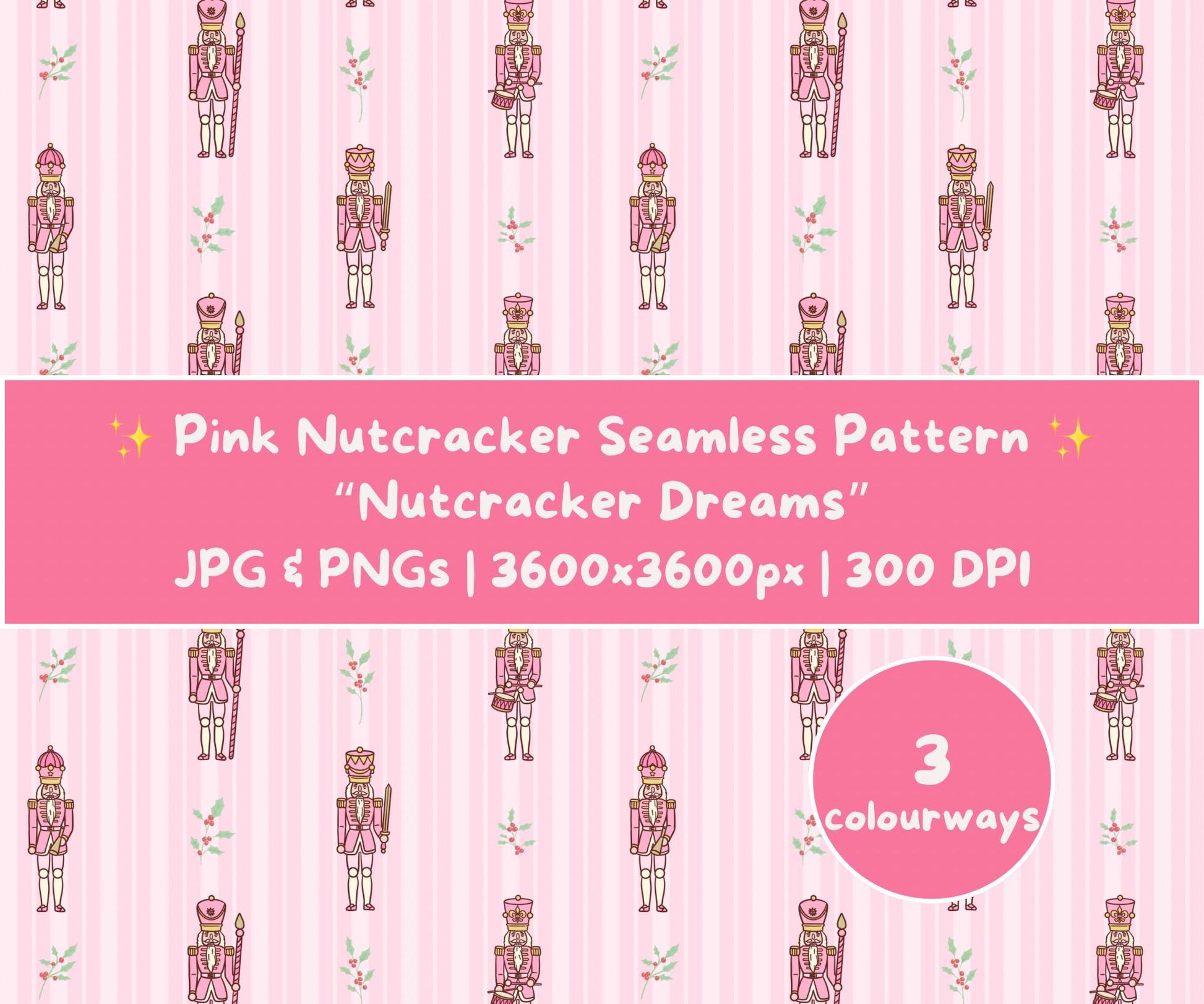 Pink Nutcracker Seamless Pattern | Nutcracker Dreams Christmas Ballet Design