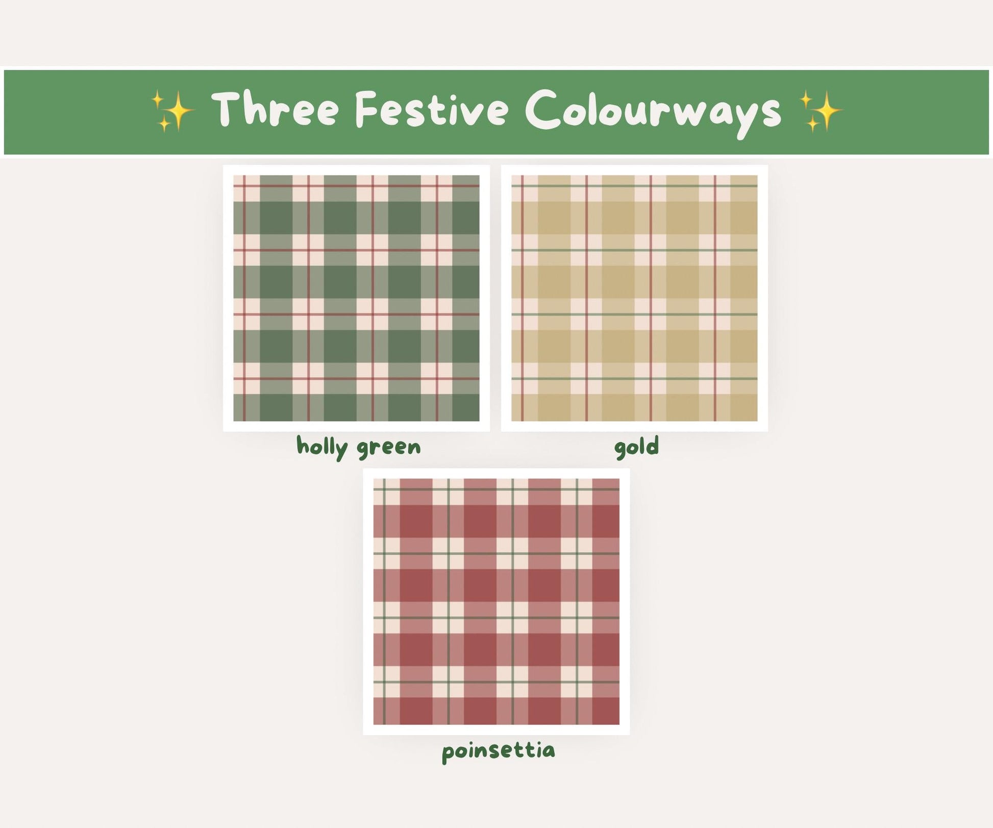 ✨ A festive twist on traditional plaid: cozy, classic, and endlessly versatile for holiday crafts and packaging. In three colourways: Holly Green, Poinsettia, & Gold.