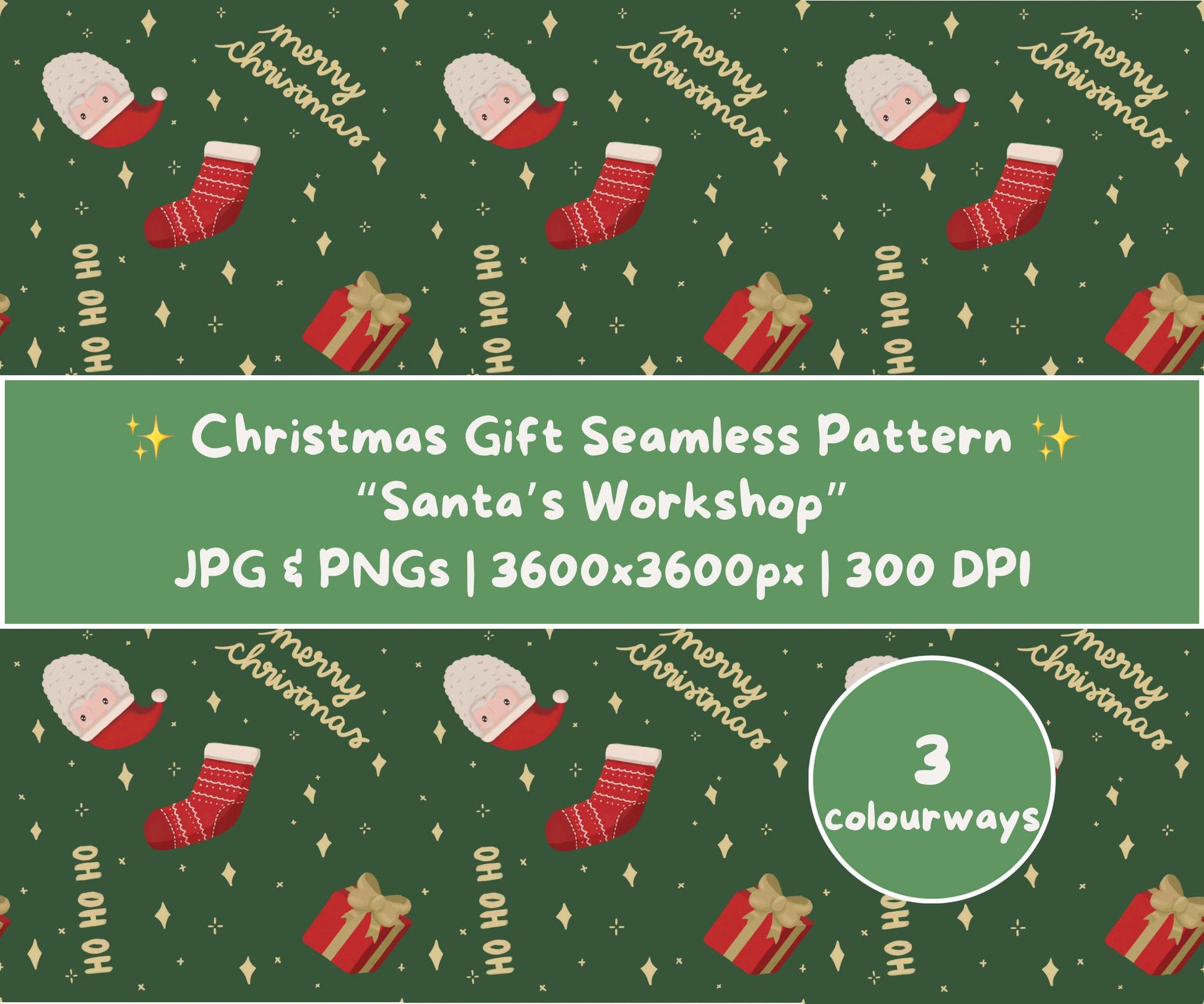 Santa’s Workshop Seamless Pattern | Santa, Stockings & Gifts
