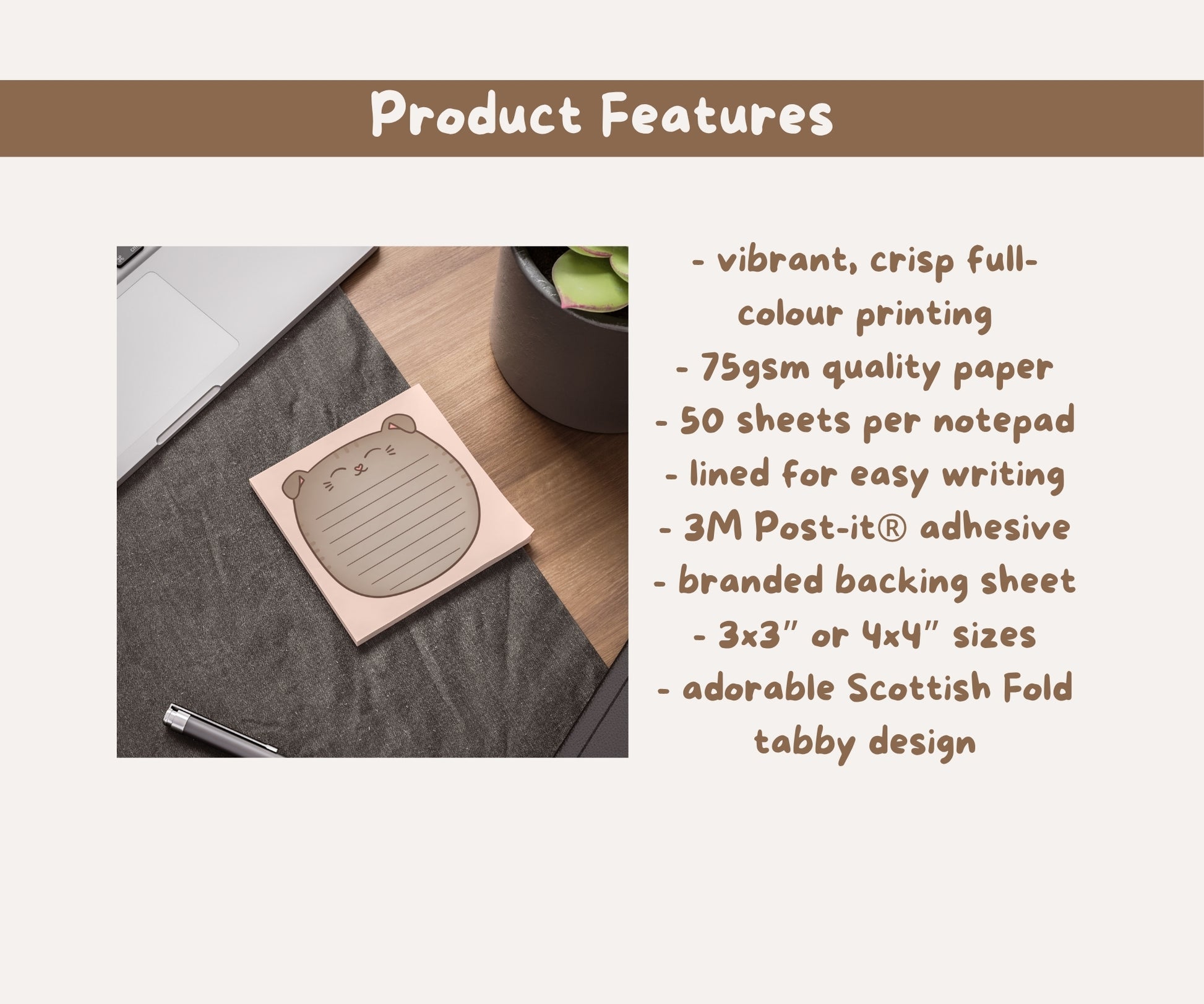 Scottish Fold Cat Post-it® Notepad | Grey Tabby Cat Lined Memo Pad
