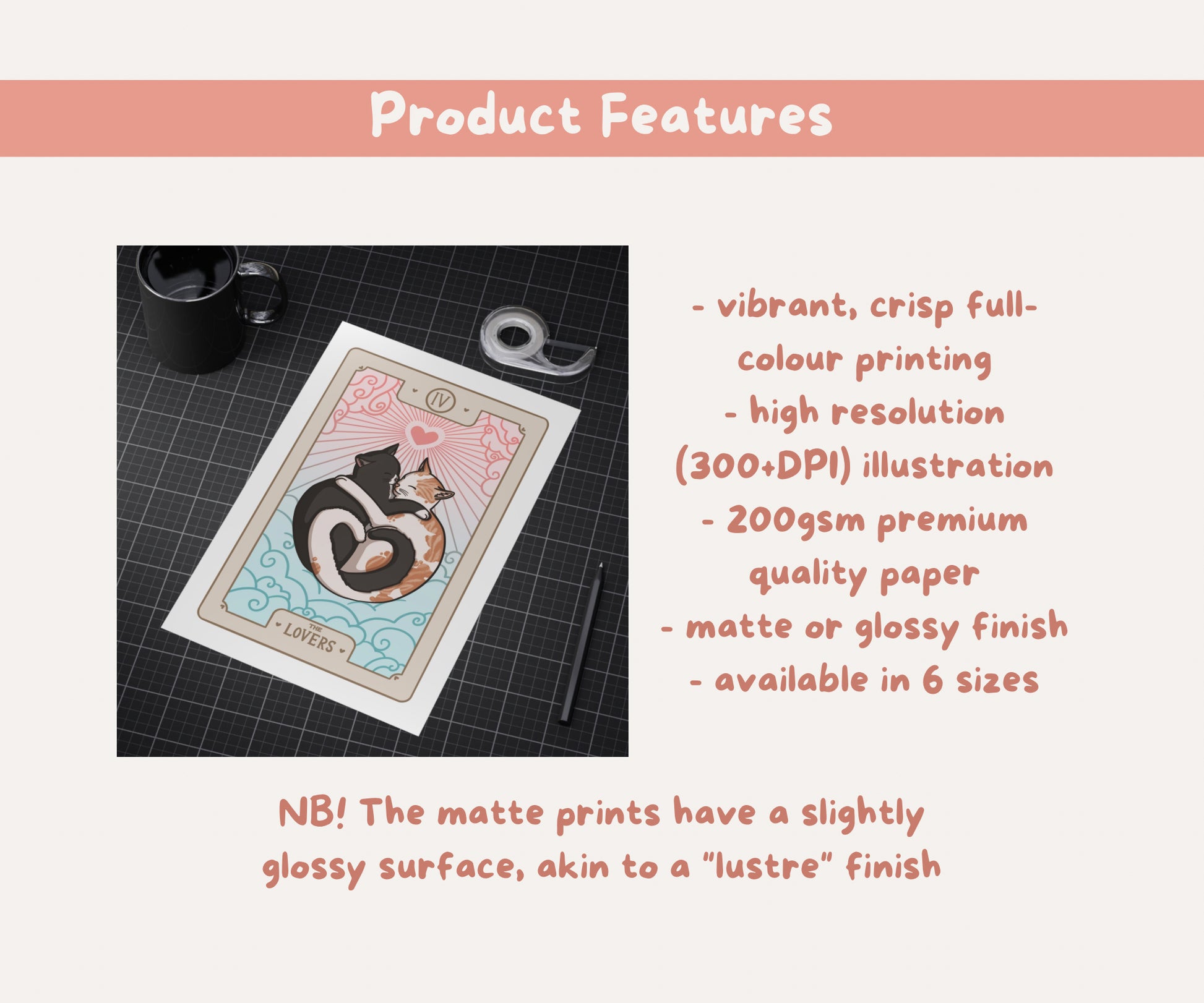 The Lovers Cat Tarot Card Unframed Prints | Witchy Kitty Wall Art