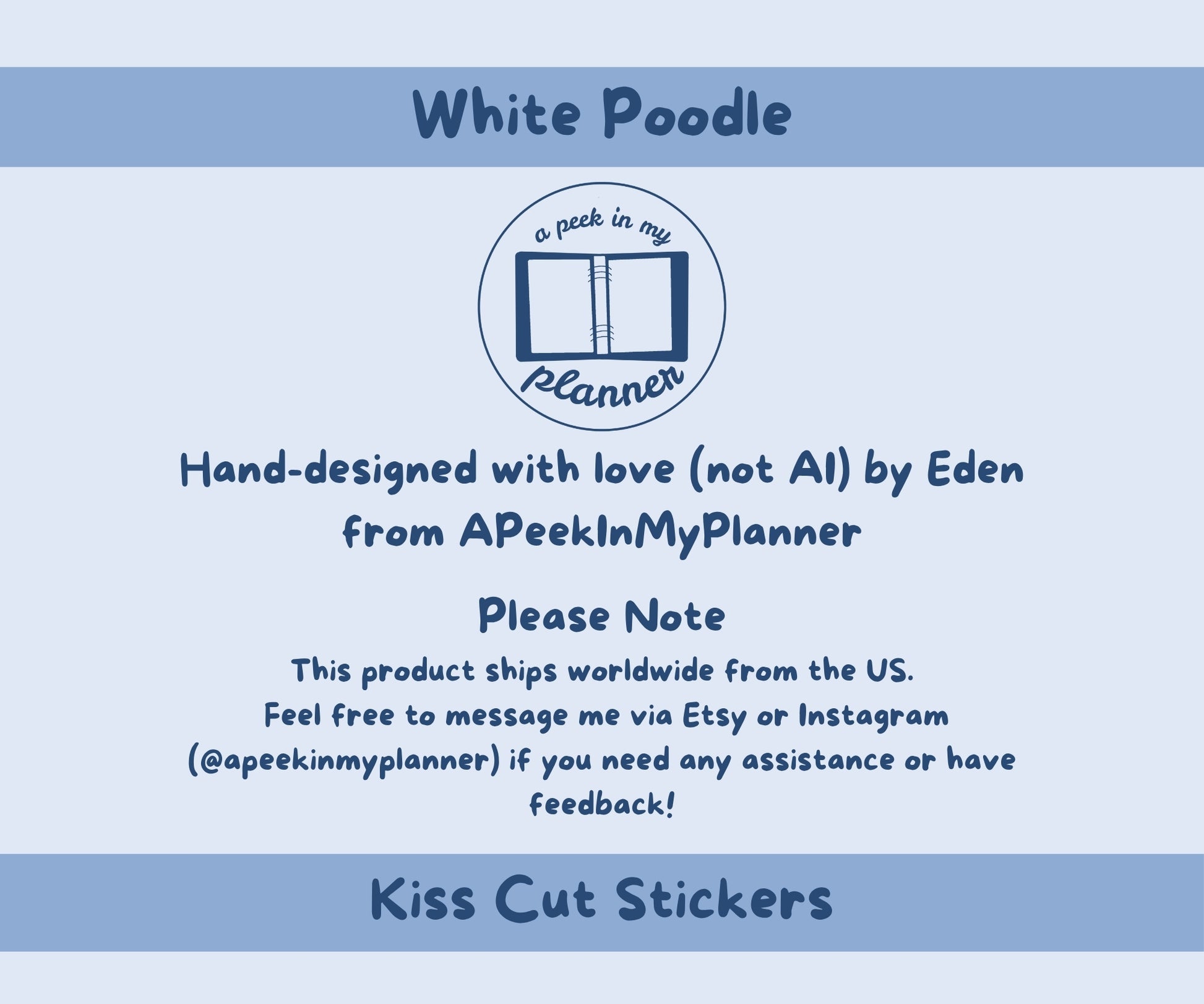 White Poodle Sticker Sheet | Poodle Dog Kiss-Cut Stickers